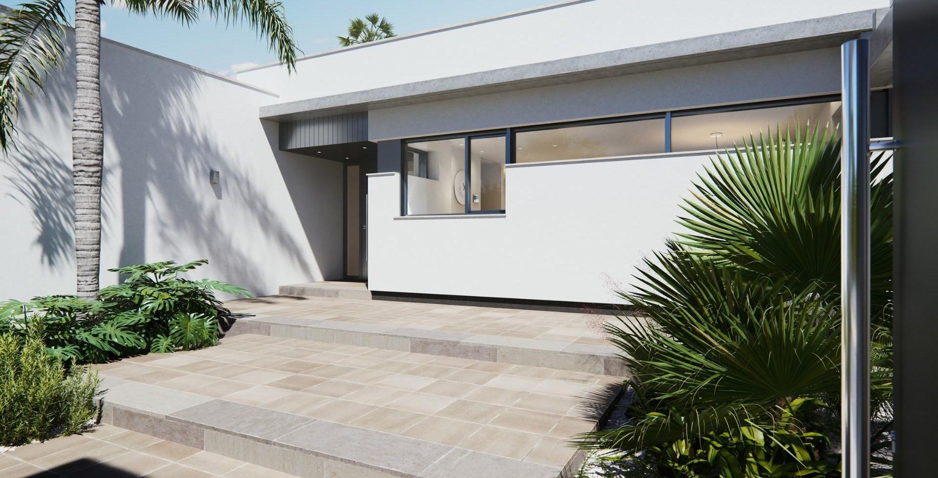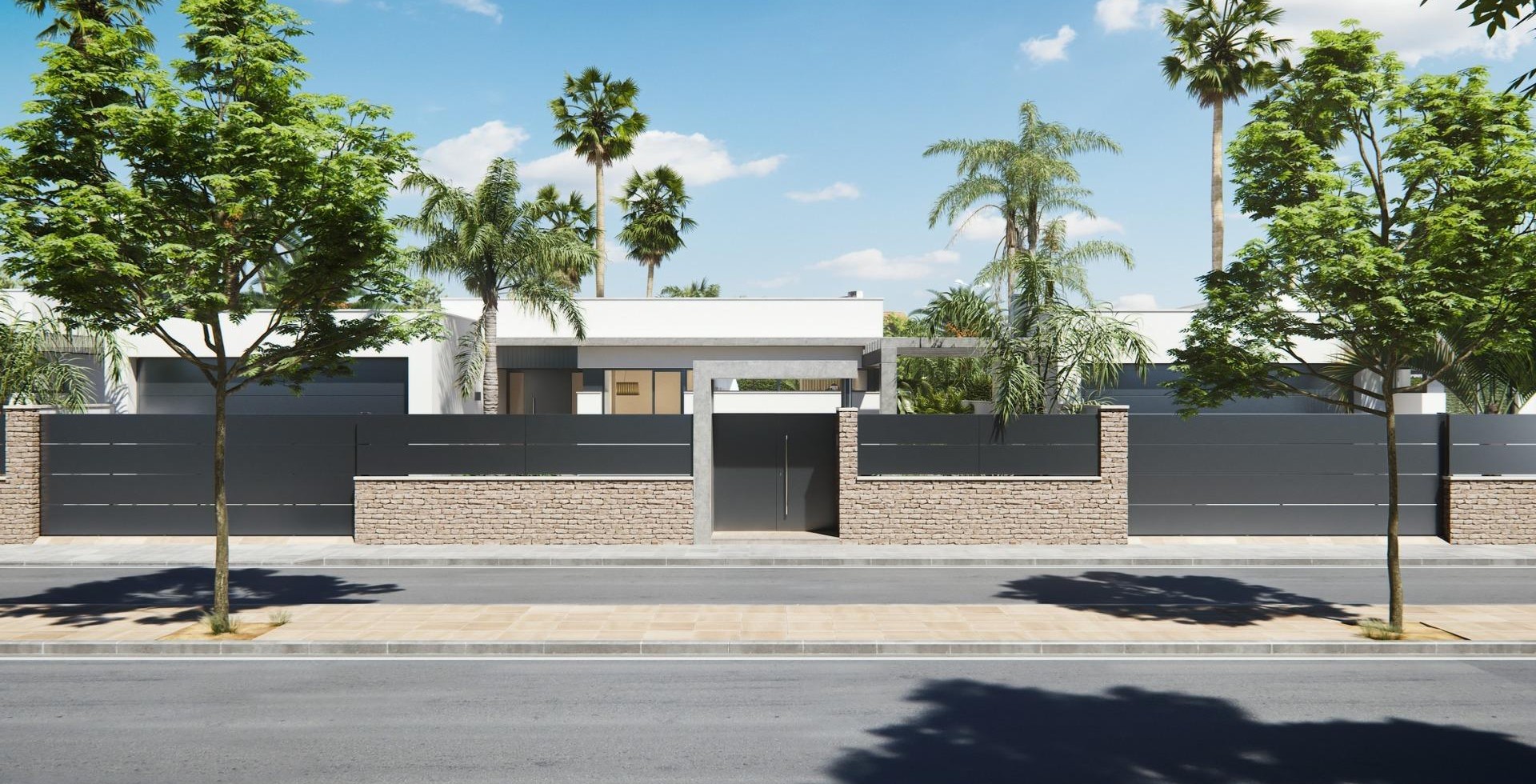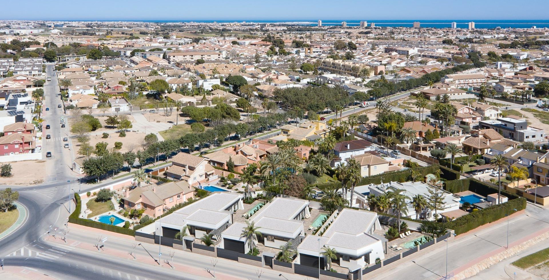NEW BUILT VILLA ON A FLOOR Three exclusive villas in a residential area in San Javier with 600 m2 of plot and 217 m2 of built area on one floor, private pool and large garden areas. Residential with an architectural design based on clear, cubic and functional lines in an exclusive residential enclave in San Javier (Murcia). Automated garden and garage access doors with infrared remote control. Large covered garage for two vehicles with separate entrance. Gardens with a water drainage system on the floor, completely finished and customizable including vegetation, irrigation and lighting.