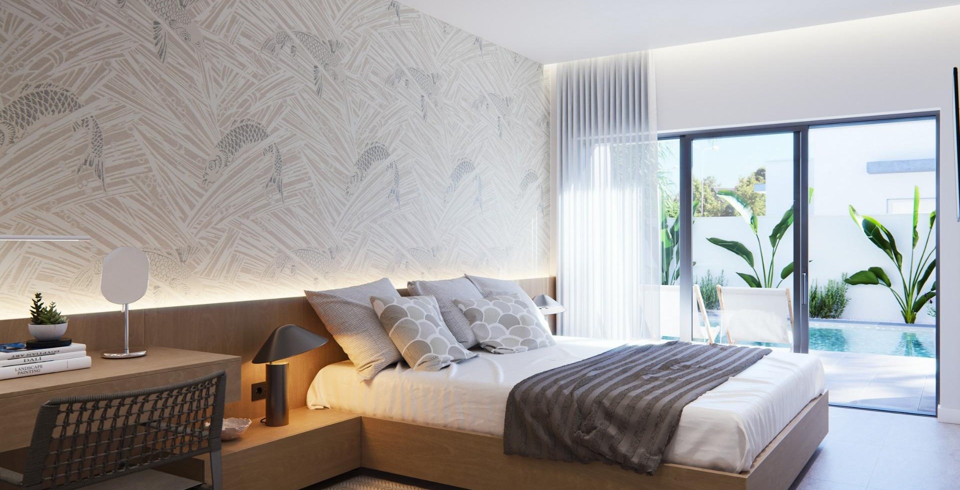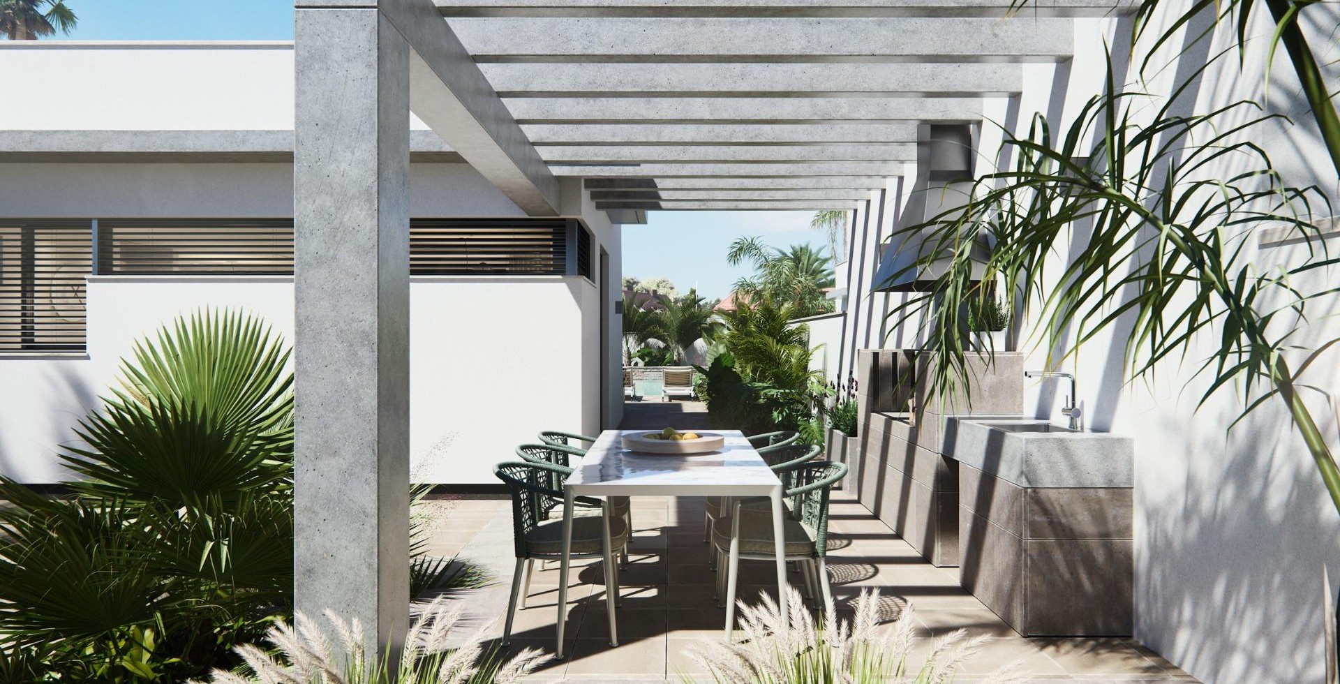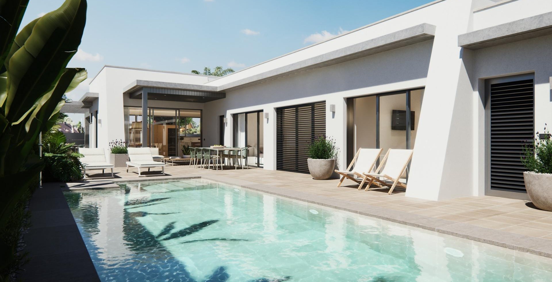 NEW BUILT VILLA ON A FLOOR Three exclusive villas in a residential area in San Javier with 600 m2 of plot and 217 m2 of built area on one floor, private pool and large garden areas. Residential with an architectural design based on clear, cubic and functional lines in an exclusive residential enclave in San Javier (Murcia). Automated garden and garage access doors with infrared remote control. Large covered garage for two vehicles with separate entrance. Gardens with a water drainage system on the floor, completely finished and customizable including vegetation, irrigation and lighting.