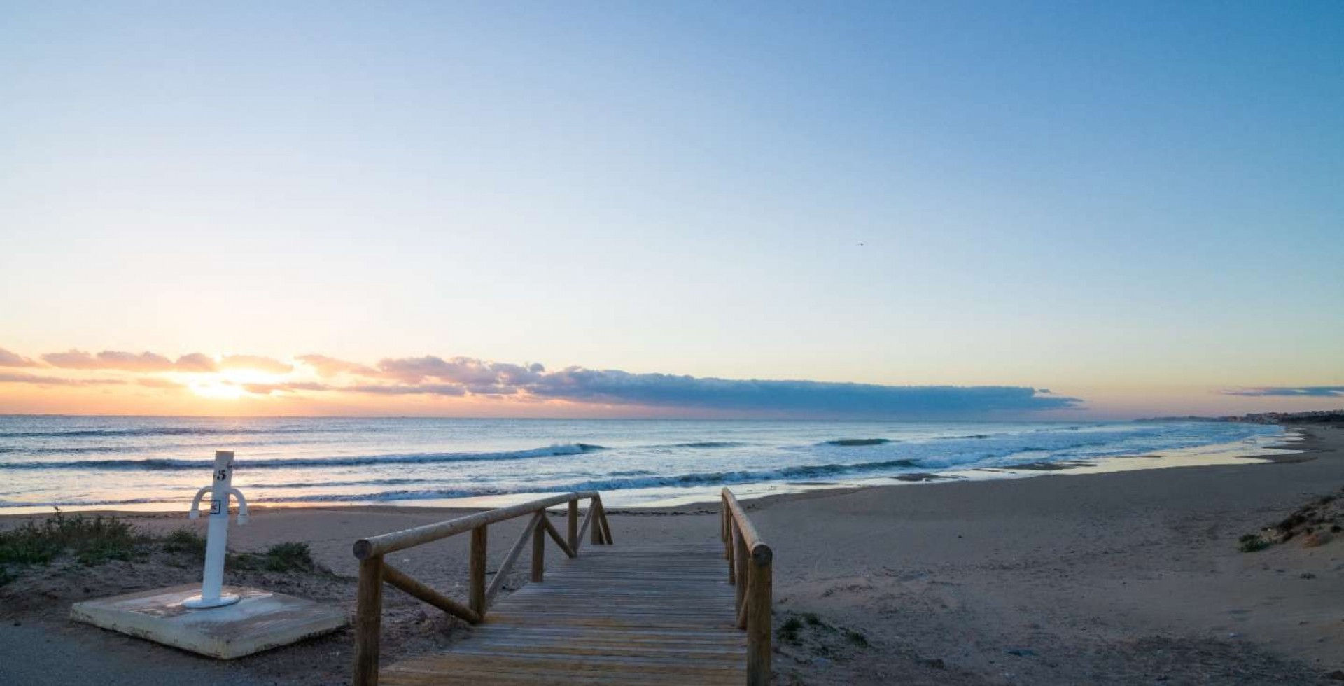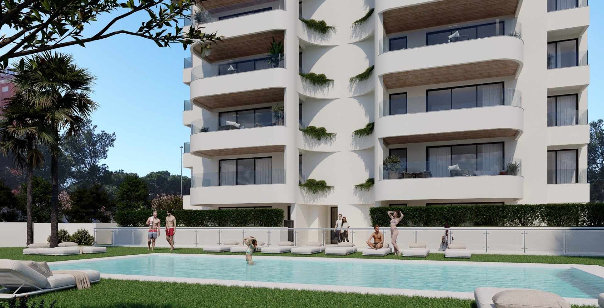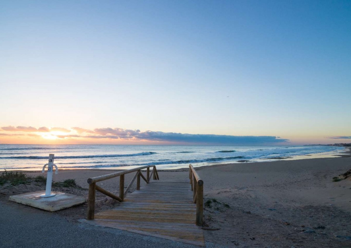 Guardamar is a picturesque municipality of 16,000 inhabitants in the south of the Costa Blanca. Its excellent communications keep you well connected, whether by car, train or plane. The International Airport, just 30 km away, connects you to the main capitals of Europe. The city of Alicante, with its High Speed Train station, is only 45 minutes away. Guardamar has an extensive coastline of 11 km of warm, golden sandy beaches, awarded three blue flags for their high ecological value. Behind its beaches stretches La Pinada de Guardamar, a dune forest of 800 hectares with pine, eucalyptus and palm trees. Another of the great natural attractions is the mouth of the Segura river in the Mediterranean Sea, where there is a small lighthouse and the Marina de las Dunas, ideal for fishing and water sports enthusiasts. The surroundings of Navale Residencial have a special charm, not only for its idyllic beaches, but also for its traditional shops, its varied gastronomic offer, hiking trails both inland and from the Pinada itself in front of the residential, and a wide range of sporting activities. In Navale Residencial you will have all services at your fingertips, with a supermarket just a few metres away, public transport nearby and the centre of Guardamar just 5 minutes away, offering shops, chemists and much more. The ground-floor apartments have a private garden with terrace and direct access to the communal pool with sunbathing area. The apartments include 2 bedrooms, 2 bathrooms and spacious living room with open-plan fitted kitchen. Each apartment includes a car parking space and storage room. There is also space for parking bicycles. Prices subject to availability. Contact us for more information.