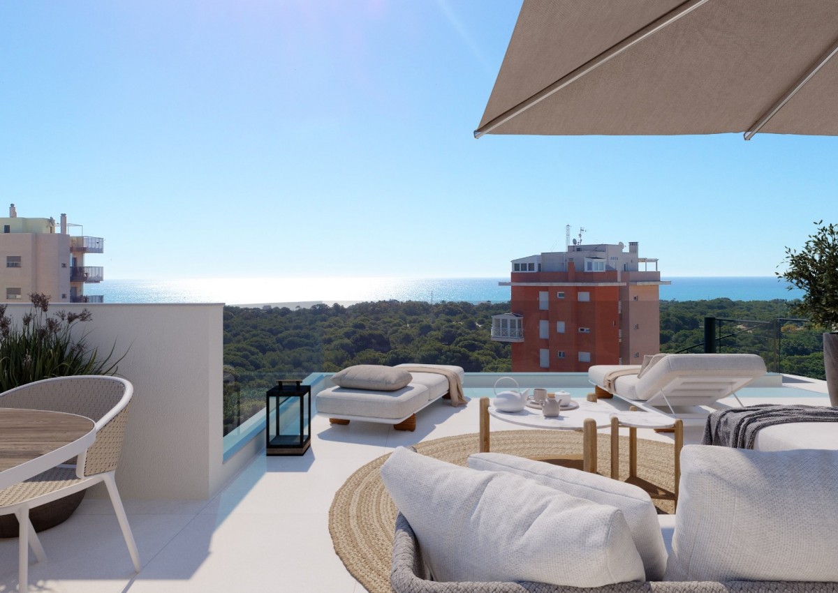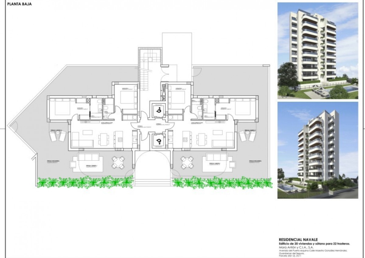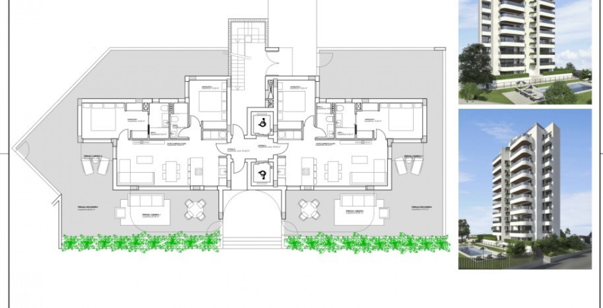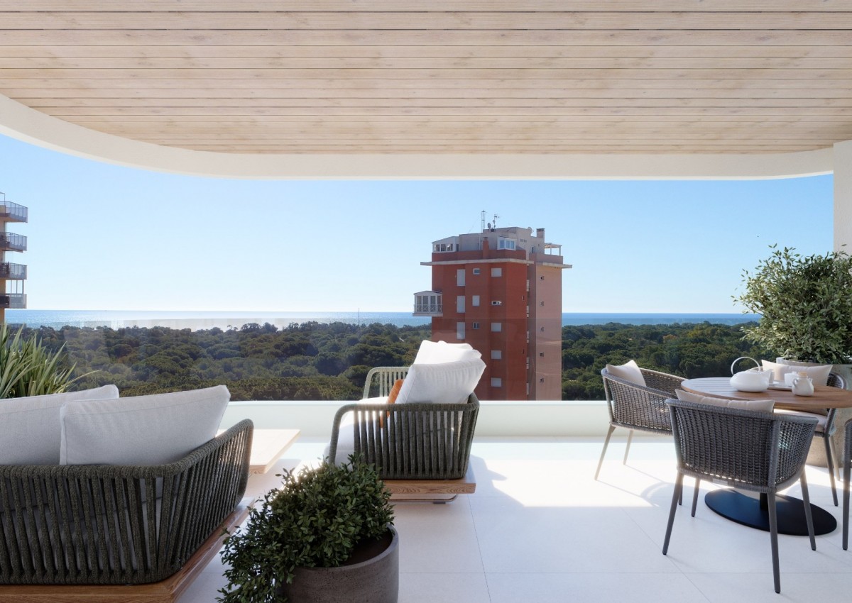 Guardamar is a picturesque municipality of 16,000 inhabitants in the south of the Costa Blanca. Its excellent communications keep you well connected, whether by car, train or plane. The International Airport, just 30 km away, connects you to the main capitals of Europe. The city of Alicante, with its High Speed Train station, is only 45 minutes away. Guardamar has an extensive coastline of 11 km of warm, golden sandy beaches, awarded three blue flags for their high ecological value. Behind its beaches stretches La Pinada de Guardamar, a dune forest of 800 hectares with pine, eucalyptus and palm trees. Another of the great natural attractions is the mouth of the Segura river in the Mediterranean Sea, where there is a small lighthouse and the Marina de las Dunas, ideal for fishing and water sports enthusiasts. The surroundings of Navale Residencial have a special charm, not only for its idyllic beaches, but also for its traditional shops, its varied gastronomic offer, hiking trails both inland and from the Pinada itself in front of the residential, and a wide range of sporting activities. In Navale Residencial you will have all services at your fingertips, with a supermarket just a few metres away, public transport nearby and the centre of Guardamar just 5 minutes away, offering shops, chemists and much more. The ground-floor apartments have a private garden with terrace and direct access to the communal pool with sunbathing area. The apartments include 2 bedrooms, 2 bathrooms and spacious living room with open-plan fitted kitchen. Each apartment includes a car parking space and storage room. There is also space for parking bicycles. Prices subject to availability. Contact us for more information.