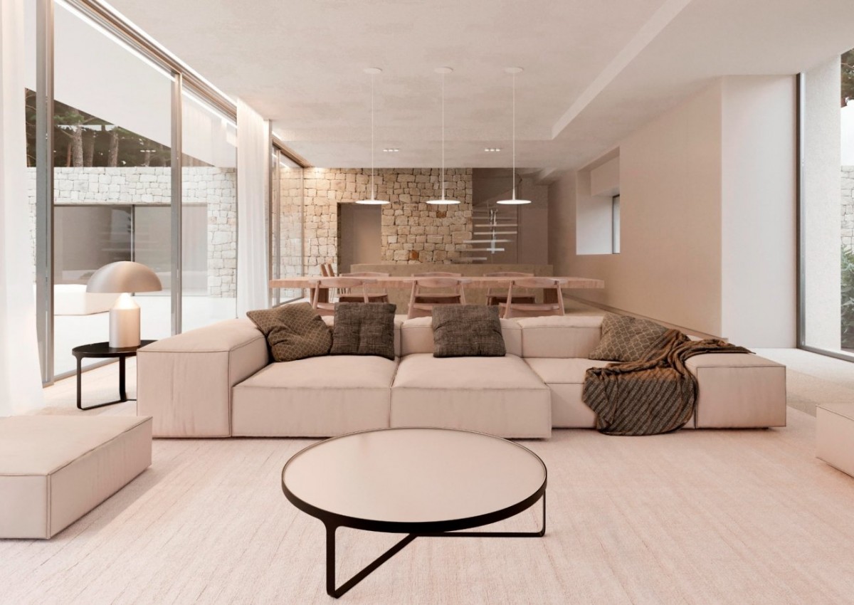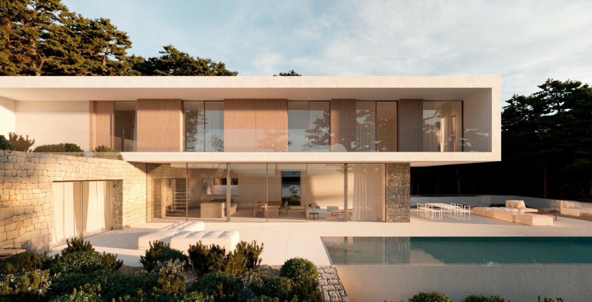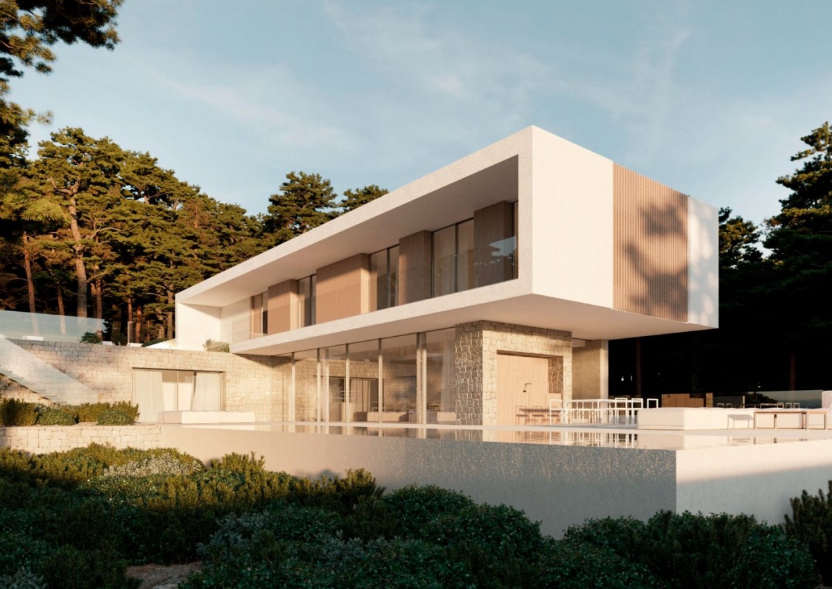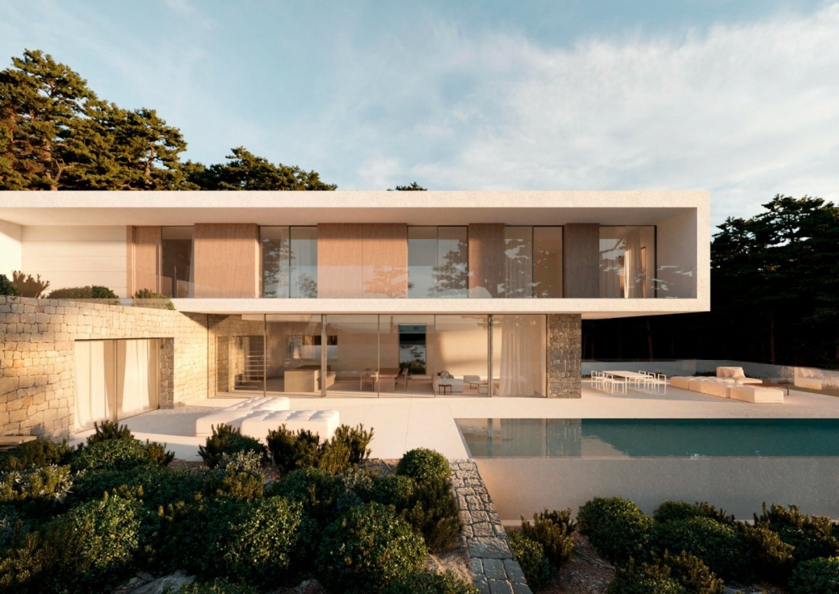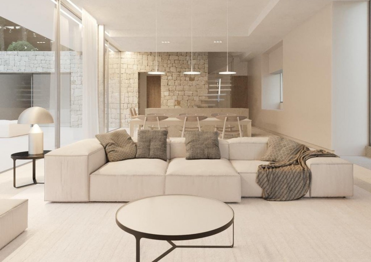 LUXURY NEW BUILD VILLA IN MORAIRA New Build Luxury villa with the best qualities, and overlooking the sea, on a plot of 1046 m2 with two pedestrian and vehicle accesses, one through the communal area of the urbanization. The villa is within walking distance of the beautiful beaches and the center of Moraira. Luxury villa distributed over 3 floors: ground floor with a large bright living room next to the open kitchen with kitchen island, a guest toilet, and a bedroom with bathroom en suite. Outside this floor is the infinity pool, with a large terrace and barbecue area. Upstairs we find the upper floor with 3 spacious bedrooms with their bathroom en suite, and their own balcony where you can enjoy the beautiful views offered by this villa. Outside this floor is the garage. Finally, the basement, we find a storage room of 221 m2. EXTRAS: Technal carpentry with security glass, full kitchen with Siemens appliances, bathrooms and complete roca brand taps, LED lighting, aerothermal system for hot water and underfloor heating, air conditioning ducts (hot and cold) throughout the house, solar panels, fitted wardrobes, electric shutters, indoor alarm, pre-installation of outdoor alarm and security cameras. Rectangular pool with overflow system barbecue area, laundry, finished garden. Automatic access doors. Energy classification A. South facing Moraira is a small town with good restaurants, bars and plenty of supermarkets around. There is a very pleasant beach right next to town that is great for families. The seafront offers tremendous views of Penon Ifach across the bay in Calpe. The coast road getting there is well worth doing with some spectacular views. Moraira situated about 1 hour 15 minutes North up the A7 from Alicante airport its fairly easy to get to. It's about the same distance or a little less South from Valencia airport.