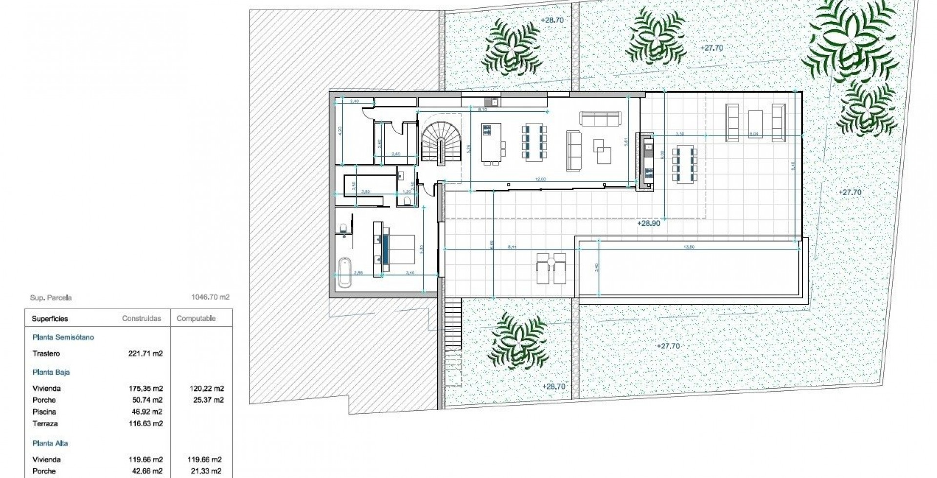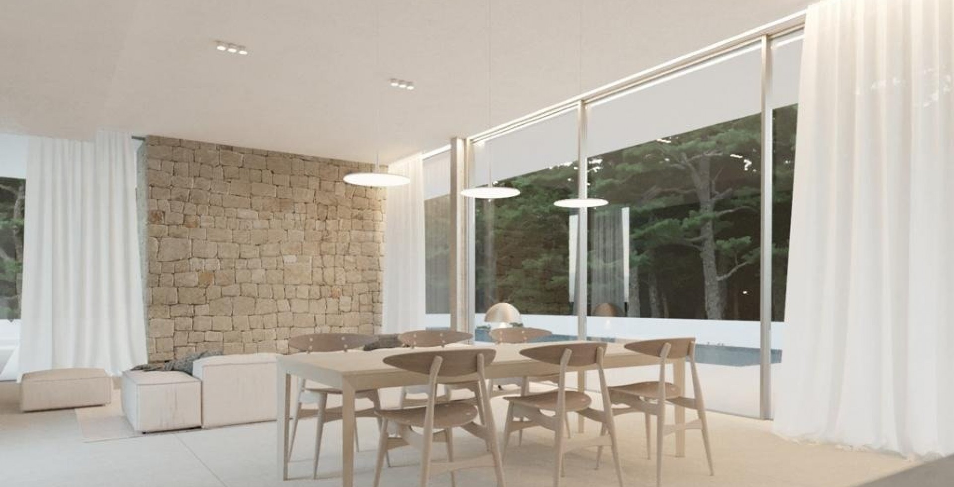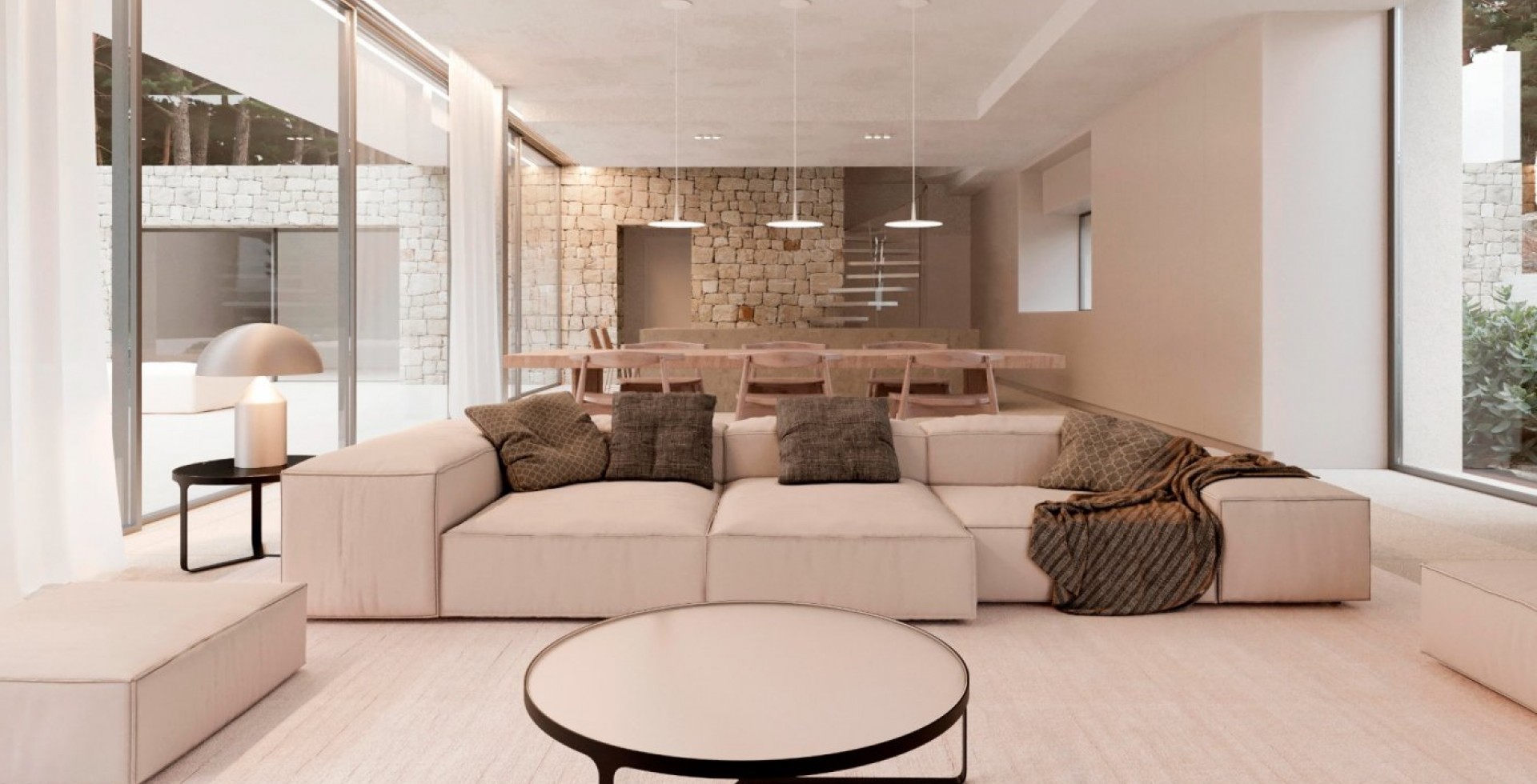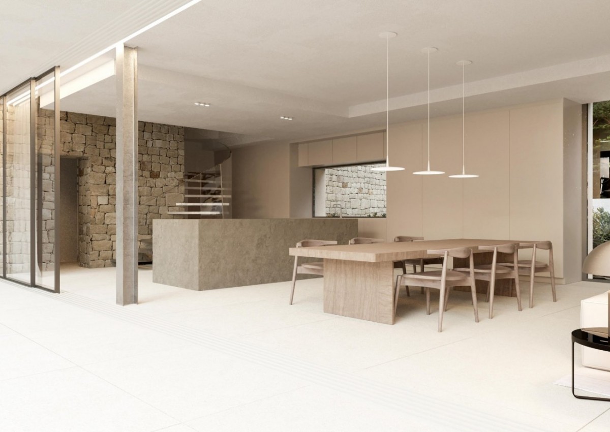 LUXURY NEW BUILD VILLA IN MORAIRA New Build Luxury villa with the best qualities, and overlooking the sea, on a plot of 1046 m2 with two pedestrian and vehicle accesses, one through the communal area of the urbanization. The villa is within walking distance of the beautiful beaches and the center of Moraira. Luxury villa distributed over 3 floors: ground floor with a large bright living room next to the open kitchen with kitchen island, a guest toilet, and a bedroom with bathroom en suite. Outside this floor is the infinity pool, with a large terrace and barbecue area. Upstairs we find the upper floor with 3 spacious bedrooms with their bathroom en suite, and their own balcony where you can enjoy the beautiful views offered by this villa. Outside this floor is the garage. Finally, the basement, we find a storage room of 221 m2. EXTRAS: Technal carpentry with security glass, full kitchen with Siemens appliances, bathrooms and complete roca brand taps, LED lighting, aerothermal system for hot water and underfloor heating, air conditioning ducts (hot and cold) throughout the house, solar panels, fitted wardrobes, electric shutters, indoor alarm, pre-installation of outdoor alarm and security cameras. Rectangular pool with overflow system barbecue area, laundry, finished garden. Automatic access doors. Energy classification A. South facing Moraira is a small town with good restaurants, bars and plenty of supermarkets around. There is a very pleasant beach right next to town that is great for families. The seafront offers tremendous views of Penon Ifach across the bay in Calpe. The coast road getting there is well worth doing with some spectacular views. Moraira situated about 1 hour 15 minutes North up the A7 from Alicante airport its fairly easy to get to. It's about the same distance or a little less South from Valencia airport.