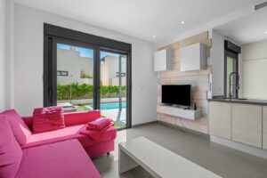Discover this exclusive detached villa in the sought-after area of Ciudad Quesada, one of the most in-demand locations on the Costa Blanca thanks to its excellent quality of life, privileged climate, and proximity to beaches, services, and golf courses. This magnificent property stands out for its south-facing orientation, ensuring natural light throughout the day, and its private swimming pool, perfect for enjoying the Mediterranean lifestyle in complete privacy. On the ground floor, the villa offers a modern and functional design with an open-plan kitchen fully integrated into a spacious and bright living room, creating an ideal space for everyday living and entertaining guests. There is also a full bathroom on this floor. On the first floor, the property features two double bedrooms and a second full bathroom. The master bedroom has its own private balcony, while the guest bedroom also has a private balcony with direct access via stairs to a spectacular solarium. This upper space is one of the main highlights of the property, offering wide open views ideal for relaxing, sunbathing, or enjoying outdoor evenings. Although the villa is detached, it is located within a private gated residential complex with well-maintained tropical gardens, providing a secure, शांत and pleasant environment. In addition, the property includes an assigned parking space at the entrance of the residential complex, adding convenience and easy access. A perfect opportunity as a permanent residence, holiday home, or real estate investment on the Costa Blanca, in a high-demand area with strong appreciation potential.