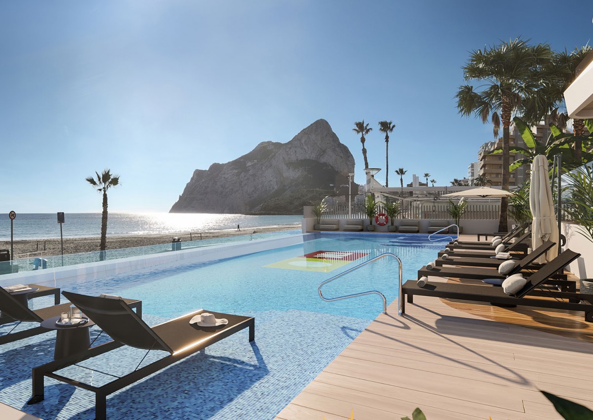 Azure Icons by TM está ubicado en primera línea de la playa de La Fossa en Calpe, con dos accesos peatonales, uno por la Avenida Juan Carlos I y otro desde el mismo paseo marítimo de la playa de La Fossa. La urbanización está compuesta por un total de 72 viviendas con apartamentos de 1, 2 y 3 dormitorios y áticos dúplex con solárium de 3 dormitorios. Las zonas comunes están compuestas por piscina de adultos climatizable infinity con vistas al mar, piscina infantil climatizable, jacuzzis climatizables, playa piscina con zona de duchas, tumbonas y sombrillas, gimnasio panorámico con vistas al mar, sauna, área de juegos infantiles y zona de ejercicios al aire libre.