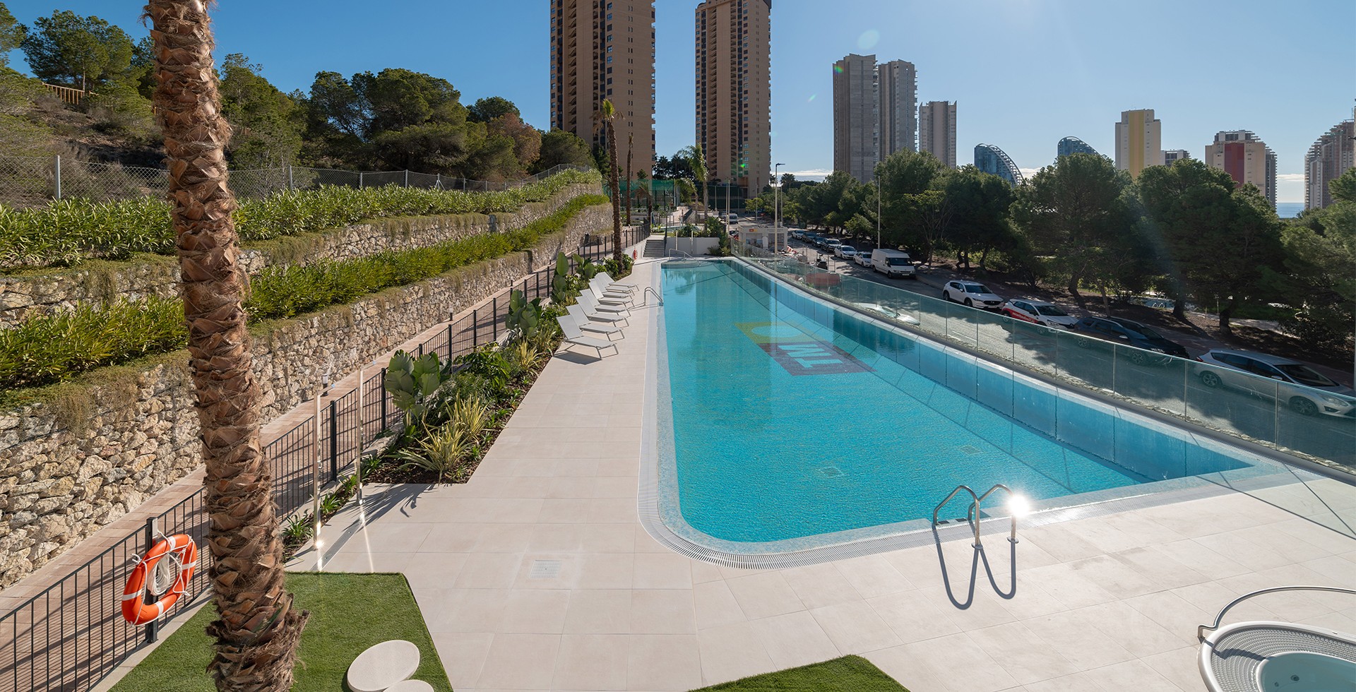 El mar, el golf y la vida de Benidorm, todo se puede disfrutar en Eagle Tower by TM. Ubicación privilegiada, junto a “Las Rejas Golf”, a tan solo 1km de playa de Poniente y con una excelente comunicación tanto con la N-332 como la AP7. Eagle Tower by TM va a contar con una única torre con una variada tipología de viviendas, donde podrás elegir entre 1, 2, 3 y 4 dormitorios, con plaza de aparcamiento y amplias terrazas con barandillas de vidrio que te permitirán disfrutar de mayor luminosidad y vistas desde tu vivienda. Además, la urbanización incluye unas magníficas zonas comunes de 5.400 metros cuadrados con: piscina de adultos, piscina infantil, 2 jacuzzis, zona infantil, gimnasio equipado, pista de pádel, pista multideporte, zonas verdes y varias zonas de aparcamiento de bicicletas.