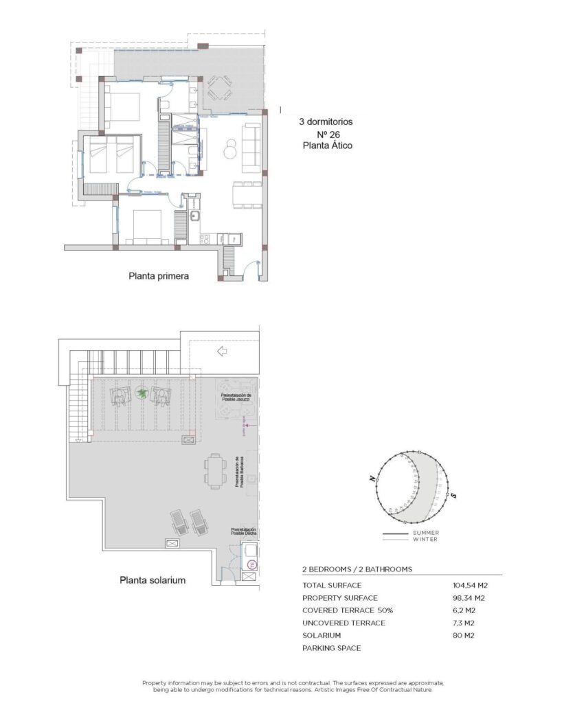 Apartamentos modernos de estilo mediterráneo en Ciudad Quesada, Costa Blanca Vida residencial exclusiva Descubra un exclusivo complejo residencial privado diseñado para ofrecer el máximo confort, calidad y estilo de vida en una de las ubicaciones más codiciadas de la Costa Blanca. Situado en Ciudad Quesada, a pocos minutos del aeropuerto internacional de Alicante, este moderno complejo combina el encanto atemporal de la arquitectura mediterránea con un diseño fresco y funcional, ideal para la vida contemporánea. Elegantes apartamentos con espacios exteriores privados El complejo cuenta con dos tipos de viviendas que se adaptan a diferentes estilos de vida. Elija entre apartamentos en planta baja con un amplio jardín privado, perfecto para relajarse al aire libre, o apartamentos en primera planta con un gran solárium privado, ideal para disfrutar del sol durante todo el año y de unas vistas tranquilas. Cada apartamento cuenta con 2 o 3 dormitorios y 2 baños, y ofrece interiores luminosos y confortables. Además, todas las viviendas disponen de aparcamiento privado dentro del complejo y un trastero para mayor comodidad. Espacios comunitarios para el relax y el bienestar Diseñado para el disfrute y el relax, el complejo residencial ofrece hermosos jardines comunitarios y una gran piscina que crean un ambiente sereno y exclusivo. Tanto si desea relajarse bajo el sol, darse un refrescante baño o simplemente disfrutar del entorno natural, esta promoción le ofrece todo lo que necesita para vivir cómodamente en la Costa Blanca. Ubicación privilegiada cerca de playas y campos de golf Ciudad Quesada es una comunidad bien establecida y vibrante, conocida por sus excelentes servicios, restaurantes y opciones de ocio. El campo de golf La Marquesa, situado a pocos minutos, es uno de los campos de golf más históricos de la Costa Blanca, con 18 hoyos y el famoso hoyo 17 inspirado en Sawgrass, que ofrece una experiencia única para los amantes del golf. Las hermosas playas con bandera azul de Guardamar del Segura, La Mata y Torrevieja están a solo 15 km de la urbanización, perfectas para tomar el sol o disfrutar de deportes acuáticos. El aeropuerto internacional de Alicante está convenientemente situado a 40 km, lo que facilita los desplazamientos. Lo mejor del estilo de vida mediterráneo Rodeado de naturaleza, campos de golf y el mar, este proyecto residencial ofrece el entorno perfecto tanto para vivir de forma permanente como para disfrutar de las vacaciones. Es un lugar donde el confort moderno se une al encanto del estilo de vida mediterráneo. Programe su visita hoy mismo No pierda la oportunidad de adquirir su nueva vivienda en Ciudad Quesada, Costa Blanca. Póngase en contacto con nosotros hoy mismo para obtener más información o concertar una visita privada a estos excepcionales apartamentos de nueva construcción. 291