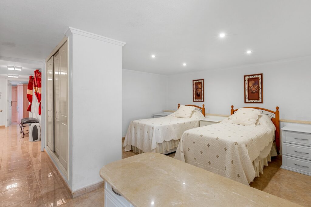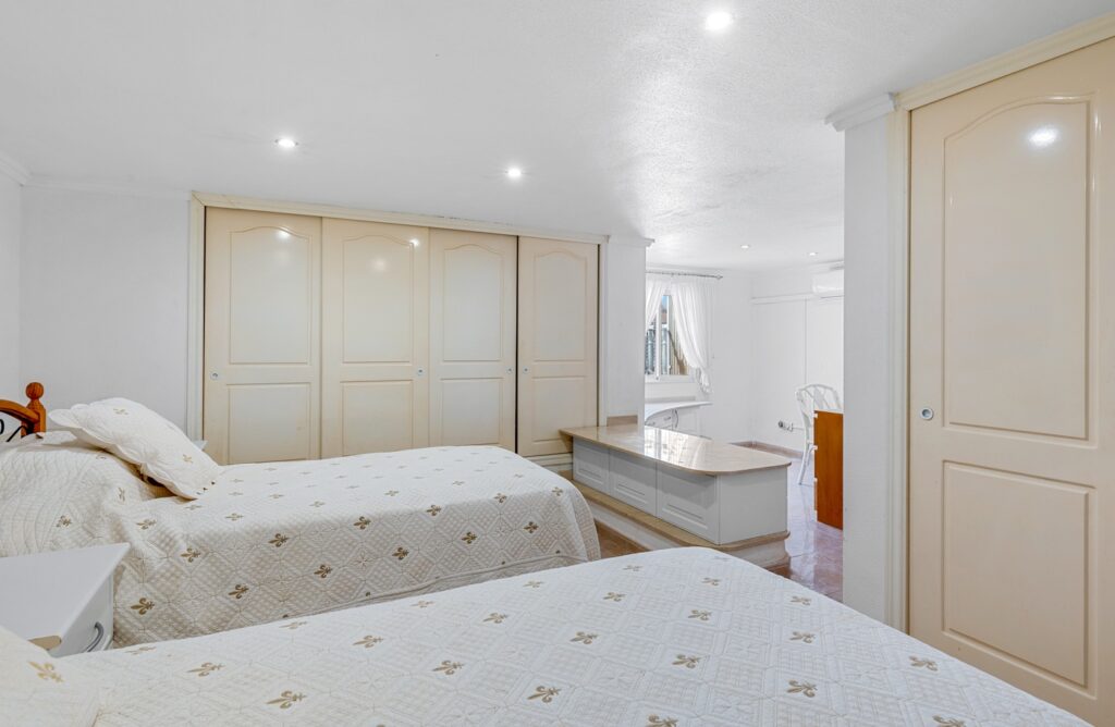 Esta espaciosa y bien distribuida villa ofrece privacidad, múltiples posibilidades de uso y amplias zonas exteriores en una de las zonas residenciales más tranquilas de Ciudad Quesada. Ubicada al final de una calle sin salida, la propiedad goza de un entorno tranquilo con poco tráfico, a poca distancia de tiendas, restaurantes y otros servicios. Construida sobre una parcela de 1.000 m², la vivienda cuenta con 179 m² distribuidos en tres plantas. La residencia principal ocupa las dos primeras. En la planta baja se encuentra un salón luminoso, una cocina completamente equipada, una lavandería y un dormitorio con baño en suite. Aunque este dormitorio no tiene acceso directo al exterior, las zonas comunes se conectan de manera fluida con las terrazas y la piscina privada. La planta superior incluye tres dormitorios y dos baños. Uno de los dormitorios funciona como suite, con su propio baño y vestidor. Un distribuidor central conecta las estancias y permite que la luz natural fluya entre los espacios. La planta superior funciona como una suite de invitados semi-independiente dentro de la misma construcción. Dispone de tres dormitorios, dos baños, una cocina, sala y comedor, una lavandería y una terraza cubierta, ideal para familia extendida o visitas prolongadas. En el exterior, la propiedad ofrece una piscina privada, varias terrazas y una zona de estar con pérgola. También incluye un garaje privado y un trastero independiente. Entre otras comodidades se encuentran aire acondicionado, armarios empotrados y una orientación este que permite disfrutar del sol por la mañana. Con un total de siete dormitorios y seis baños, esta villa es una opción versátil y acogedora para familias numerosas, hogares multigeneracionales o quienes buscan una vivienda amplia en una zona tranquila y bien comunicada.