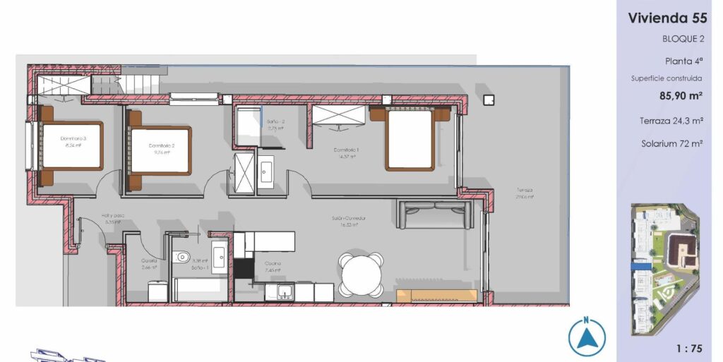 • Superficie útil: 75 m²