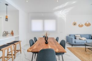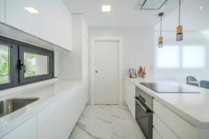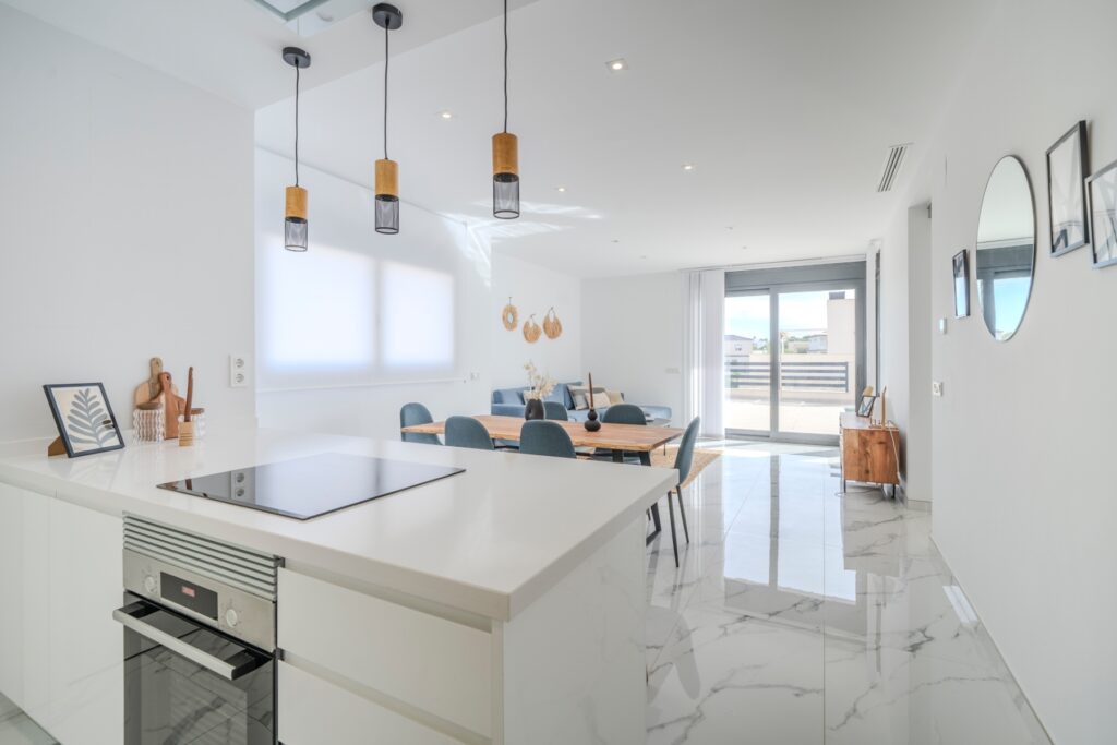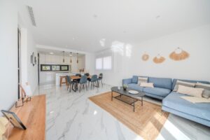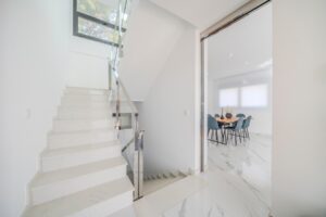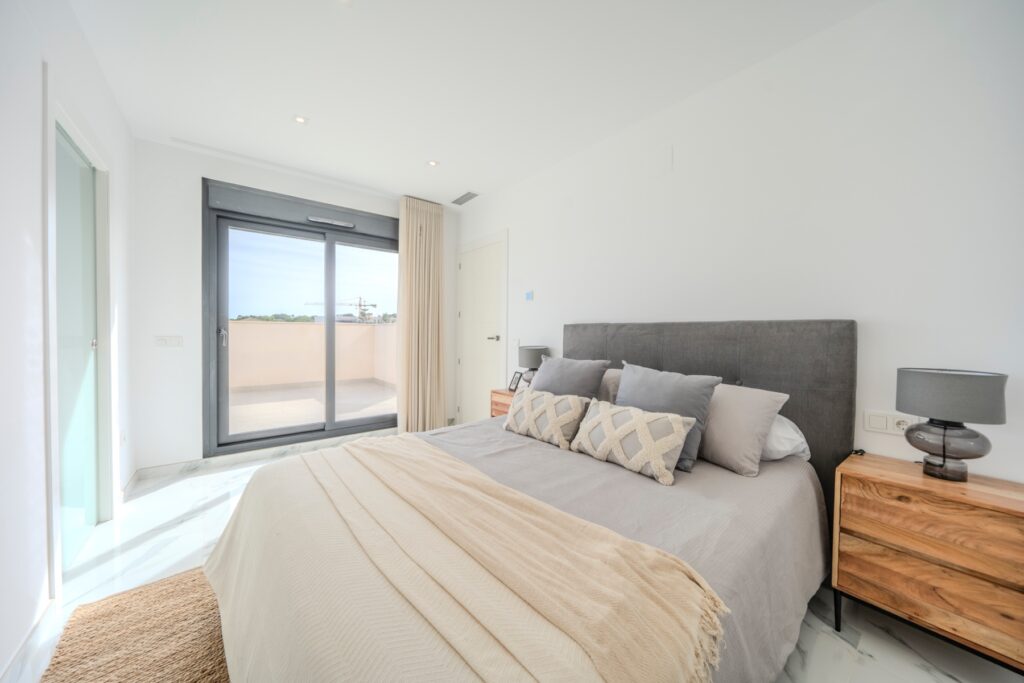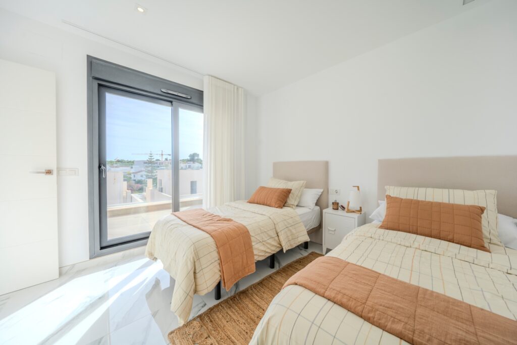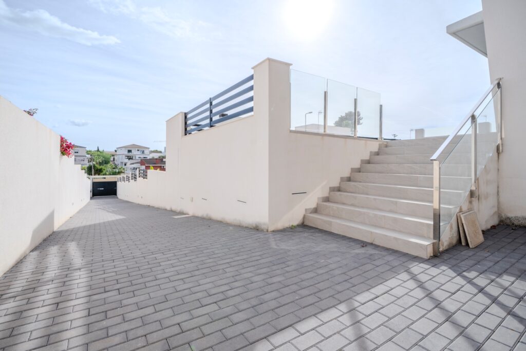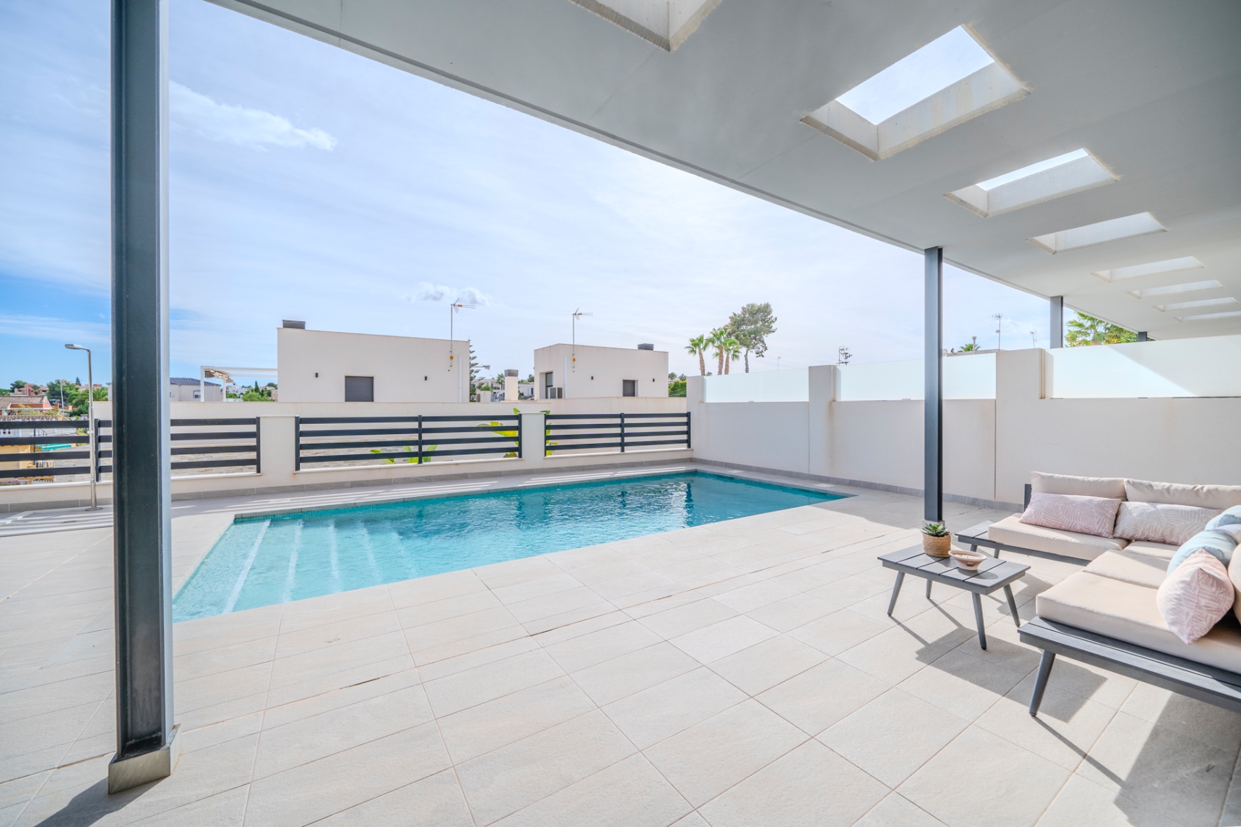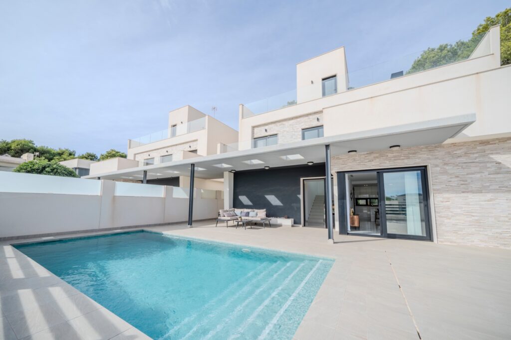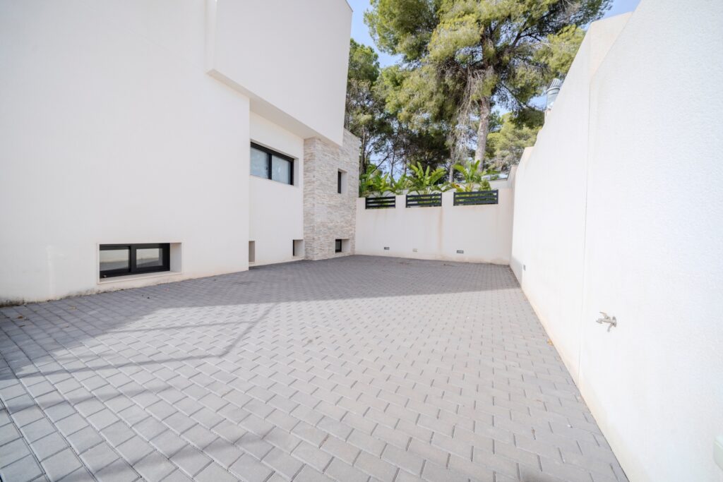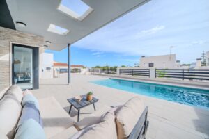Villa moderna de 5 dormitorios y 4 baños en Los BalconesVilla moderna con 5 dormitorios y 4 baños en la parte alta de los Balcones, con piscina privada y varias terrazas con orientación sur e increíbles vistas.La vivienda esta distribuida en sótano 2 plantas y solarium. En el sótano encontramos dos habitaciones amplias con luz natural y un baño. En la planta baja se ubica la zona exterior, con una zona de estar cubierta y una piscina con ducha exterior. También encontramos el salón y la cocina de diseño abierto. La cocina cuenta con una habitación para lavandería y almacenamiento. El salón y la zona exterior se comunican a través de unos grandes ventanales que proporcionan una gran cantidad de luz gracias a su orientación sur. En la planta primera encontramos dos habitaciones (una de ellas con armario empotrado y otra con vestidor) que cuentan con baños en-suite. Ambas tienen acceso a una terraza que recorre la fachada de la propiedad. En la planta superior se ubica el solarium, que tiene vistas a las zonas verdes, al mar y a Las Salinas de Torrevieja.La propiedad cuenta con aire acondicionado y calefacción por aerotermia. Se vende amueblada y equipada.