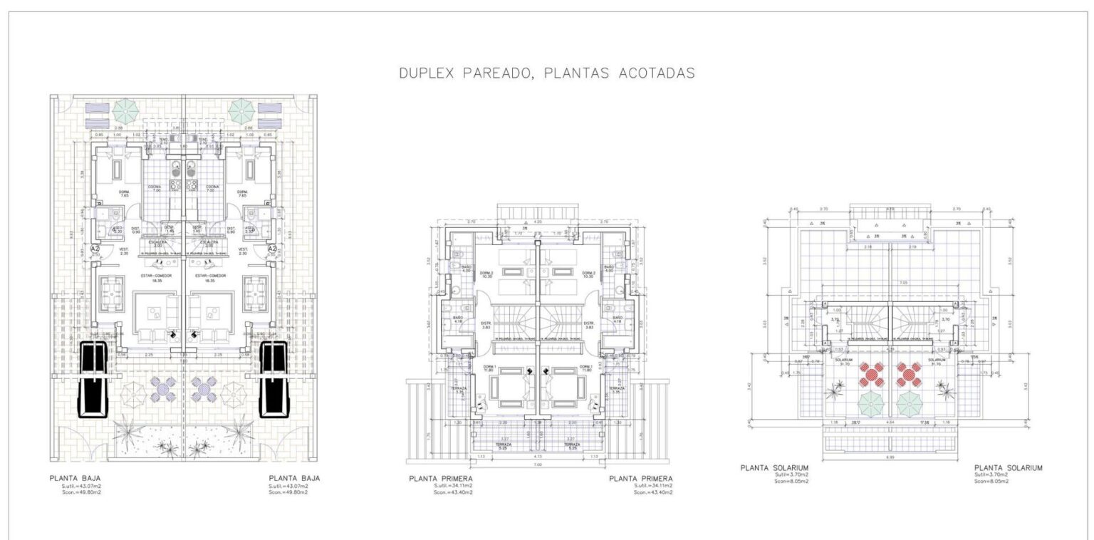 Modernas villas adosadas con vistas al mar en Puerto de Mazarrón Exclusivas viviendas nuevas cerca de la playa Descubra estas fantásticas villas adosadas de nueva construcción situadas en la codiciada zona de Mar de Plata, El Alamillo, en Puerto de Mazarrón. Situadas a solo 350 metros de la playa, estas modernas viviendas disfrutan de hermosas vistas al mar desde sus soláriums privados, lo que ofrece una oportunidad única para disfrutar del estilo de vida mediterráneo en la Costa Cálida. El barrio es tranquilo, residencial y bien establecido, ideal para vivir todo el año o como refugio vacacional. Amplia distribución con solárium privado Cada villa ofrece una superficie construida de 101 m² en una parcela en esquina de 126 m², distribuida en dos plantas más un solárium. En la planta baja se encuentra un luminoso salón, una cocina independiente con acceso a la parte trasera de la parcela, un dormitorio doble y un cuarto de baño completo. La primera planta cuenta con dos dormitorios, uno con acceso a dos terrazas con vistas abiertas y el otro con baño en suite, además de un baño familiar adicional. La planta superior está dedicada a un solárium privado de 31 m² con impresionantes vistas al mar, perfecto para tomar el sol, comer al aire libre o relajarse con los amigos. Espacio exterior y piscina comunitaria El exterior incluye una parcela en esquina con espacio para aparcamiento privado en el lateral y una zona de lavandería en la parte trasera. El complejo residencial también ofrece una piscina comunitaria, creando un ambiente agradable para que las familias y los residentes disfruten de su tiempo libre en un entorno seguro y acogedor. Especificaciones de alta calidad Estas viviendas están construidas con materiales de calidad e incluyen una puerta de entrada reforzada, preinstalación de aire acondicionado por conductos, baños con muebles, espejos y mamparas de ducha, sistema de agua caliente alimentado por energía aerotérmica, persianas eléctricas en los dormitorios y en las aberturas de la fachada principal, y carpintería exterior de aluminio con doble acristalamiento. La cocina se entrega sin muebles, lo que permite a los compradores personalizarla a su gusto. La vida en Puerto de Mazarrón Puerto de Mazarrón es una de las localidades costeras más atractivas de la Región de Murcia, conocida por sus hermosas playas, sus aguas cristalinas, su encantador puerto deportivo y su ambiente relajado. La zona ofrece excelentes servicios, tiendas, restaurantes, colegios, centros médicos y opciones de ocio al aire libre. Los espacios naturales cercanos, como la Sierra de las Moreras, son perfectos para practicar senderismo y ciclismo, mientras que los amantes de los deportes acuáticos pueden disfrutar de la vela, el buceo y el kayak. Distancias a puntos de interés Playa Negra 0,35 km Puerto deportivo de Mazarrón 2 km Centro comercial Parque de Mazarrón 5 km Camposol Golf 25 km Hacienda del Álamo Golf 35 km Cartagena 35 km Ciudad de Murcia 70 km Aeropuerto de Murcia Corvera 45 km Su hogar en la costa le espera Estas villas adosadas de nueva construcción en Puerto de Mazarrón combinan vistas al mar, diseño moderno y una ubicación inmejorable cerca de la playa y de todos los servicios. Póngase en contacto con nosotros hoy mismo para obtener más información o concertar una visita privada.