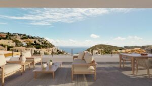 Nowo wybudowane apartamenty w Cumbre del Sol Benitatxell pomiędzy Javea a Moraira Ekskluzywne mieszkanie nad Costa Blanca Położone w prestiżowej dzielnicy Cumbre del Sol w Benitatxell, między Javea a Moraira, to nowoczesne osiedle apartamentowe zaprasza do doświadczenia Costa Blanca z wyjątkowej perspektywy. Otoczony naturą i z widokiem na Morze Śródziemne, jest idealnym wyborem dla tych, którzy szukają drugiego miejsca zamieszkania nad morzem lub spokojnego domu przez cały rok z wysokiej jakości usługami w pobliżu. Cumbre del Sol to ekskluzywna enklawa mieszkaniowa znana z zachwycających klifów, ukrytych zatoczek i panoramicznych widoków na morze. Okolica oferuje supermarkety, restauracje, obiekty sportowe, centrum jeździeckie oraz renomowaną szkołę Lady Elizabeth, co czyni ją idealną dla rodzin i międzynarodowych nabywców. Nowoczesny design z prywatnością i otwartym widokiem Kompleks składa się z budynków o niskiej gęstości zabudowy z zaledwie pięcioma mieszkaniami na blok, zapewniając prywatność i spokój. Architektura łączy nowoczesny, funkcjonalny i zrównoważony design z czystymi liniami i otwartymi przestrzeniami, które maksymalizują naturalne światło. Kupujący mogą wybierać między mieszkaniami z 2 a 3 sypialniami, dwoma łazienkami, kuchnią otwartą i przestronnymi przestrzeniami dziennymi. W zależności od modelu, nieruchomości obejmują duże tarasy na piętrach średnich, prywatne ogrody na parterze lub ekskluzywne dachowe solaria na penthouse. Wszystkie domy oferują otwarte widoki, które wzmacniają połączenie z otaczającym krajobrazem śródziemnomorskim. Wysoka jakość wykończeń i efektywność energetyczna Każde mieszkanie jest zbudowane z wysokiej jakości materiałów i zaawansowanych energooszczędnych systemów, w tym klimatyzacji kanałowej, ogrzewania podłogowego, stałej wentylacji oraz hybrydowego systemu aerotermalnego. Aluminiowa stolarka zewnętrzna z przeszkodą termiczną zapewnia doskonałą izolację i komfort przez cały rok. Znakomite obszary wspólnotowe i środowisko naturalne Mieszkańcy mogą korzystać z kilku wspólnych basenów, ogrodów zagospodarowanych, klubu towarzyskiego, placu zabaw dla dzieci oraz wspólnych parkingów. Kompleks jest zintegrowany z naturalnym środowiskiem Cumbre del Sol, oferując bezpośredni dostęp do szlaków pieszych i rowerowych. Niektóre z najpiękniejszych zatoczek na wybrzeżu Alicante znajdują się zaledwie kilka minut stąd, a urokliwe miasteczka Moraira, Javea, Altea i Calpe są łatwo dostępne. Odległości do kluczowych punktów Plaży i zatoczek 2 km Moraira 6 km Javea 7 km Javea Golf Club 5 km Lotnisko Alicante 95 km Lotnisko w Walencji 120 km Odkryj swój śródziemnomorski azyl Ten nowy projekt w Cumbre del Sol oferuje prywatność, widoki na morze i nowoczesny komfort w jednej z najbardziej pożądanych części Costa Blanca. Skontaktuj się z nami już dziś, aby uzyskać więcej informacji i zabezpieczyć swoje nowe mieszkanie nad Morzem Śródziemnym. 291