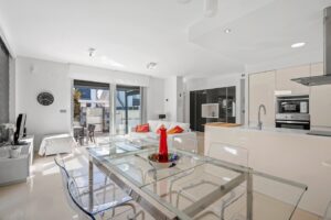 Odkryj ten urokliwy i przyjazny dom kondygnacyjny, zbudowany w 2014 roku, idealny do całorocznego życia, jako drugi dom lub nieruchomość inwestycyjną dzięki licencji turystycznej. Dom może się pochwalić 90 m² powierzchni mieszkalnej na działce o powierzchni 230 m², oferując idealną równowagę między komfortem wnętrza a przestrzeniami na zewnątrz, umożliwiając pełne korzystanie z śródziemnomorskiego klimatu. Posiada trzy sypialnie i dwie łazienki, a w głównej sypialni znajduje się prywatna łazienka oraz duże okno z widokiem na basen, co pozwala na fantastyczne naturalne światło przez większość dnia. Na zewnątrz nieruchomość zachwyca swoim prywatnym ogrodem o powierzchni 73 m², idealnym miejscem do relaksu, opalania się, posiłków z przyjaciółmi lub stworzenia strefy relaksu. Dom posiada także prywatny basen, prawdziwy luksus do chłodzenia się i pełnej prywatności. Zaprojektowany z myślą o wygodie, dom wyposażony jest w markizy i dwie aluminiowe pergole: jedną na głównym tarasie, idealną do jedzenia na świeżym powietrzu w cieniu, a drugą w solarium, uprzywilejowanym miejscem do spędzania słońca przez cały rok, czytania, napienia się o zachodzie słońca lub po prostu relaksu. Kolejną dużą zaletą jest jego orientacja na południe, która gwarantuje obfitość naturalnego światła i ciepłą, przyjazną atmosferę przez cały dzień. Na miejscu znajduje się również parking parkingowy, zapewniający wygodę i bezpieczeństwo. Położony w dogodnym i dobrze skomunikowanym miejscu, jest zaledwie 5 minut spacerem od najbliższego supermarketu i zaledwie 10 minut jazdy od plaży Guardamar, jednej z najbardziej cenionych ze względu na rozległe piaszczyste plaże i naturalne otoczenie. Ta nieruchomość oferuje wszystko: prywatność, naturalne światło, przestrzenie na zewnątrz, basen, oranżerię oraz doskonałą lokalizację, gotową do korzystania od pierwszego dnia.