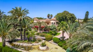 Witamy na tej pięknej posiadłości położonej w popularnej dzielnicy Elche.  Finca znajduje się na dużej działce o powierzchni 4 750 m2. Większość domu została całkowicie wyremontowana od 2019 roku.  Główny dom składa się z dwóch pięter . Na parterze: przestronne przedsionko, salon i jadalnia, świeżo wyremontowana kuchnia, pralnia, sypialnia, łazienka oraz pokój rodzinny/przeszklony taras z pięknym widokiem na ogród i basen.  Na drugim piętrze znajdują się cztery sypialnie dwuosobowe i dwie łazienki, oraz łącznie trzy balkony. Z głównej sypialni masz też dostęp do dużej garderoby.  Piwnica jest bardzo przestronna i ma duży potencjał. Obecnie służy jako sala gimnastyczna lub pokój dziecięcy. Na tym piętrze znajduje się także pomieszczenie elektryczne.  Nieruchomość posiada przestronne i zadbane przestrzenie zewnętrzne. Przed wejściem na teren znajduje się duży ganek z dużą ilością cienia na ciepłe letnie dni. Ogród jest piękny, a tutaj znajdziesz także w pełni wyposażoną kuchnię na zewnątrz. Przy basenie znajduje się także bardzo sprytna podbudowa, składająca się z dwóch garderob, magazynu, łazienki i prysznica. Ten niedobudowany jest zadaszony i prowadzi się do niego schodami.  Na działce jest też podwójny garaż z automatycznymi drzwiami. Aby uzyskać więcej informacji lub umówić się na oglądanie, skontaktuj się z nami!