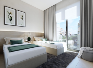 Odkryj to eleganckie, nowo zabudowane mieszkanie, położone zaledwie 100 metrów od piaszczystego Playa Centre, w samym sercu Guardamar del Segura. Położony na najwyższym (czwartym) piętrze prestiżowego osiedla Olas, oferuje prywatność, naturalne światło i widoki na morze z boku. Przy łącznej powierzchni zabudowy 101,92 m², nieruchomość oferuje przestronną część salonowo-jadalną z otwartą kuchnią, 3 sypialnie, 2 łazienki oraz przyjemny taras. Dostarczono gotowe urządzenie, nieumeblowane, w pełni wyposażone w pełne oświetlenie i wysokiej klasy sprzęt AGD (Samsung & Bosch). Obejmuje podziemne miejsce parkingowe (16 m²) oraz magazyn (3,88 m²). Budynek oferuje basen na dachu, leżaki oraz strefę relaksu z panoramicznym widokiem na morze. Tylko 5 minut pieszo do plaży, restauracji i wszystkich udogodnień. Przewidywana dostawa: sierpień 2026