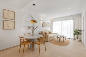 Nowo wybudowany kompleks mieszkaniowy w pobliżu Serena Golf i Mar Menor w Los Alcazares Nowoczesne nadmorskie życie nad Costa Calida Odkryj ten atrakcyjny nowo zabudowany kompleks mieszkaniowy położony w Los Alcazares, jednym z najpopularniejszych nadmorskich miasteczek na Costa Calida. Położone zaledwie 500 m od plaż Mar Menor i w odległości spaceru od centrum miasta, to osiedle oferuje doskonałe połączenie życia nadmorskiego, otoczenia golfowego i codziennej wygody. Los Alcazares słynie z swobodnej atmosfery, długich promenad, ciepłych płytkich wód oraz szerokiej gamy restauracji, sklepów i usług otwartych przez cały rok. Nowoczesne apartamenty zaprojektowane z myślą o komforcie Inwestycja składa się z 29 nowoczesnych domów z 2 lub 3 sypialniami, zaprojektowanych z czystymi liniami architektonicznymi i wysokiej jakości wykończeniami. Kupujący mogą wybierać między mieszkaniami na parterze z prywatnym ogrodem i szeregiem, domami na średnim piętrze z przestronnymi szeregami lub penthouse'ami z prywatnym tarasem i dachową oranżerią oferującą otwarty widok. Wiele z tych nieruchomości oferuje widoki na Serena Golf i Mar Menor, tworząc spokojne i przyjemne warunki życia. Wszystkie domy są projektowane tak, aby maksymalizować naturalne światło i funkcjonalność, co czyni je idealnymi na stałe zamieszkania, domy wakacyjne lub inwestycyjne. Wysokiej jakości udogodnienia i przestrzenie wspólne Każda nieruchomość posiada prywatne miejsce parkingowe oraz magazyn. Specyfikacje zostały zaprojektowane tak, aby zapewnić komfort i efektywność energooszczędną, w tym okna z podwójną szybą z przesłoną termiczną, wstępną instalację klimatyzacji kanałowej, system aerotermalny do ogrzewania wody domowej, elektryczne okiennice w sypialniach oraz kompletny pakiet oświetlenia wewnętrznego i zewnętrznego. Łazienki są w pełni wyposażone w meble, lustro i ekran prysznicowy. Mieszkańcy mogą cieszyć się atrakcyjnymi wspólnymi przestrzeniami z zagospodarowanymi ogrodami i wspólnym basenem, idealnym do relaksu i cieszenia się śródziemnomorskim klimatem. Wybrane bloki wyposażone są w windy dla większej wygody. Doskonała lokalizacja między golfem a morzem Ten kompleks mieszkaniowy cieszy się uprzywilejowaną lokalizacją obok Serena Golf, jednego z najbardziej renomowanych pól golfowych w okolicy, i zaledwie krótkiego spaceru od spokojnych wód Mar Menor. Okolica jest idealna do pływania, żeglowania, jazdy na paddleboardzie i innych sportów wodnych przez cały rok. Kluczowe odległości to plaże Mar Menor na 0,5 km, Serena Golf bezpośrednio obok osiedla, centrum Los Alcazares 2 km, Cartagena 22 km oraz miasto Murcia 40 km. Lotnisko Corvera w Murcji jest oddalone o około 30 km, a lotnisko Alicante około 90 km. Idealny dom lub okazja inwestycyjna Dzięki doskonałej lokalizacji, nowoczesnemu designowi oraz bliskości zarówno golfa, jak i morza, ten nowy kompleks mieszkaniowy w Los Alcazares oferuje doskonałą okazję do życia na Costa Calida. Skontaktuj się z nami już dziś, aby uzyskać więcej informacji lub umówić się na prywatne oględziny i zabezpieczyć swój nowy dom przy Mar Menor.