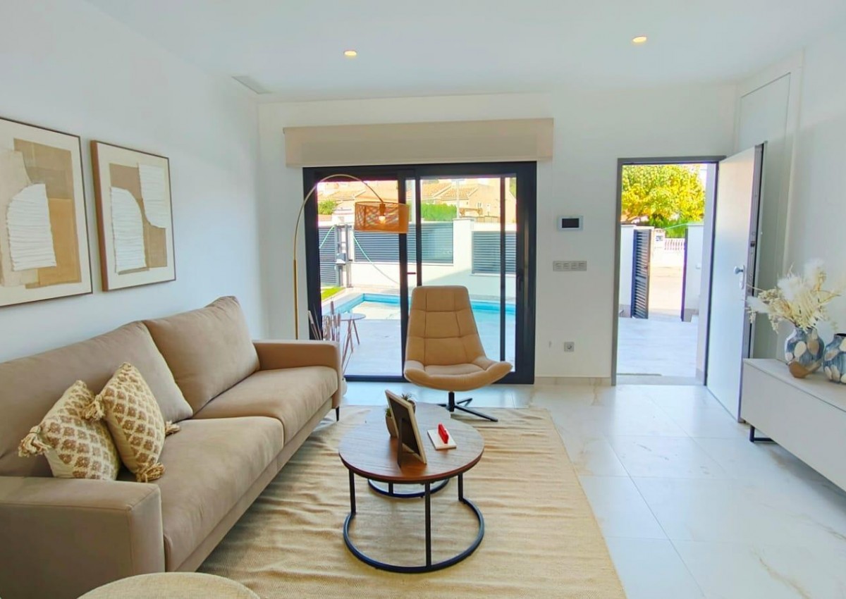 NOWO WYBUDOWANE WILLE W PINAR DE CAMPOVERDE Nowy budynek nowoczesnego osiedla willi w Pinar de Campoverde Mała inwestycja składająca się tylko z 15 willi, z których 9 jest jednopiętrowych z 3 sypialniami i 2 łazienkami, otwartym salonem-jadalnią i kuchnią z centralną wyspą i widokiem na basen, na niezależnych działkach o powierzchni od 300,00 m2. Istnieje również duże solarium, aby cieszyć się słońcem i pięknymi widokami przez cały rok. Oraz 6 ekskluzywnych willi na działkach o powierzchni od 300,00 m2 na życzenie i dostosowanych do potrzeb każdego klienta z pomocą profesjonalnego zespołu we wszystkich fazach projektu. Prywatny basen jest opcją za dodatkową opłatą. Wille znajdują się w uprzywilejowanej lokalizacji obok naturalnego obszaru Rio Seco i blisko udogodnień, obiektów sportowych i pobliskiego pola golfowego Lo Romero, hiszpańskiego miasta Pilar de la Horadada i zaledwie 15 minut jazdy od białych piaszczystych plaż La Torrede la Horadada. Idealne miejsce, jeśli chcesz być w spokojnej okolicy, w otoczeniu przyrody i blisko wszystkich usług, pola golfowego i ładnych plaż.