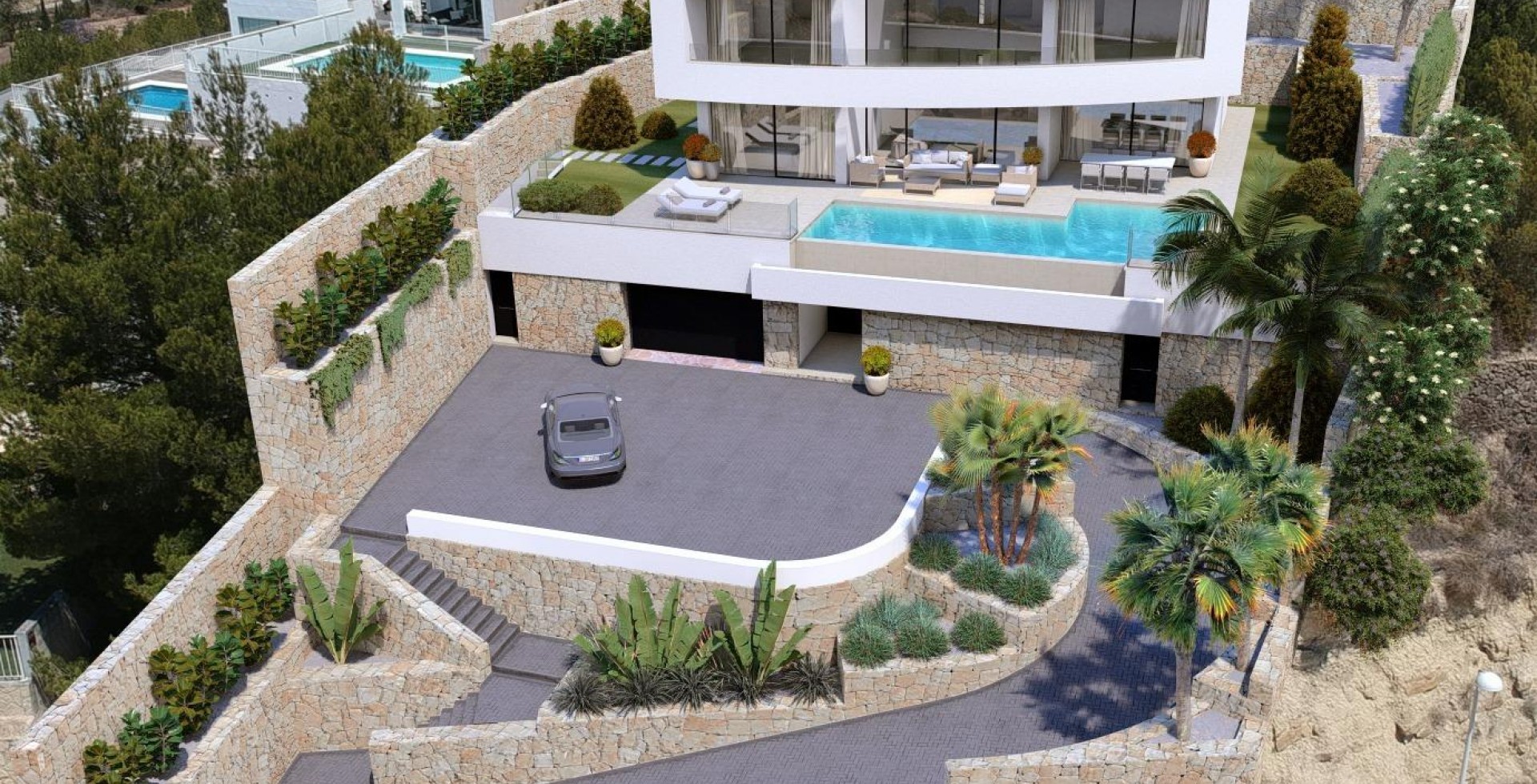 Luksusowa willa z widokiem na morze w Calpe - nowoczesna elegancja i wspaniałe widoki Doskonała lokalizacja w Calpe, Alicante - cicha i ustabilizowana okolica Ta luksusowa willa znajduje się w Calpe w Alicante, w spokojnej i znanej okolicy znanej ze swojego uroku i bliskości niektórych z najlepszych atrakcji okolicy. Położona zaledwie 5,4 km od centrum Calpe, willa ta oferuje dogodny dostęp do centrum miasta i wspaniałych plaż Calpe, które szczycą się krystalicznie czystą wodą i miękkim piaskiem. Znane ze swojego malowniczego piękna Calpe otoczone jest parkami przyrody i kultowym Peñón de Ifach, punktem orientacyjnym, który nadaje krajobrazowi wyjątkowy charakter. Pobliskie atrakcje: Centrum Calpe i plaże: Zaledwie 5,4 km, co zapewnia łatwy dostęp do lokalnych sklepów, restauracji i plaż. Lotnisko Alicante: 78 km, co czyni go wygodnym do podróży międzynarodowych i krajowych. Pola golfowe: W promieniu 15 km znajduje się kilka renomowanych pól golfowych, idealnych dla miłośników golfa. Centra handlowe: Popularne centrum handlowe La Marina w Benidorm znajduje się około 25 km od hotelu i oferuje różnorodne sklepy i restauracje. Port Calpe: Oddalony o około 6 km, idealny dla miłośników jachtów i sportów wodnych. Oszałamiająca willa z widokiem na morze i 3 piętrami nowoczesnego komfortu Ta willa oferuje 335 m² luksusowej przestrzeni mieszkalnej na dużej działce o powierzchni 1 042 m², ze spektakularnymi widokami na morze, Peñón de Ifach i miasto Calpe. Dzięki trzem starannie zaprojektowanym piętrom połączonym wewnętrznymi schodami i windą, ta willa zapewnia styl i wygodę na każdym poziomie. Poziom półpiwnicy: Parking, pralnia i piwniczka na wino Wjeżdżając z ulicy przez automatyczne bramy, można dotrzeć bezpośrednio do wejścia do garażu, znajdującego się na poziomie półpiwnicy. Przestronny garaż o powierzchni 52 m² pomieści wiele pojazdów i obejmuje dedykowaną pralnię oraz piwniczkę na wino, dodając odrobinę luksusu i praktyczności. Główne piętro: Otwarta przestrzeń mieszkalna i dostęp do basenu Na głównym piętrze, do którego można dostać się schodami lub windą, znajduje się przestronny salon i jadalnia prowadzące na werandę o powierzchni 25 m² i imponujący taras przy basenie o powierzchni 78 m². Otwarta kuchnia, w pełni wyposażona w urządzenia Siemens, płynnie łączy się z częścią dzienną. Na tym piętrze znajdują się również dwie sypialnie z łazienkami i toaleta dla gości. Górne piętro: Prywatne sypialnie z oszałamiającymi tarasami Na najwyższym piętrze znajdują się dwie dodatkowe dwuosobowe sypialnie, każda z łazienką i dostępem do otwartych tarasów z panoramicznym widokiem. Wysokiej jakości wykończenia i nowoczesne udogodnienia Ta willa oferuje najwyższej klasy funkcje, w tym stolarkę Technal z bezpiecznym szkłem, oświetlenie LED, ogrzewanie podłogowe, klimatyzację kanałową oraz system aerotermalny do ciepłej wody i ogrzewania. Dodatkowe udogodnienia obejmują elektryczne żaluzje, wbudowane szafy, wewnętrzne i zewnętrzne systemy alarmowe, wstępnie zainstalowane kamery bezpieczeństwa oraz basen bez krawędzi o wymiarach 10x3,3 m z miejscem do grillowania. Skierowana na południe, zapewniająca optymalną ekspozycję na słońce, willa jest energooszczędna z oceną A. Doświadcz życia w luksusie i spokoju w Calpe