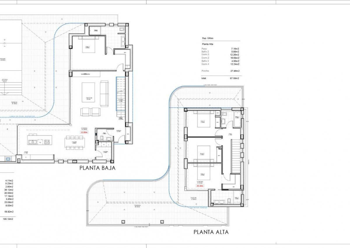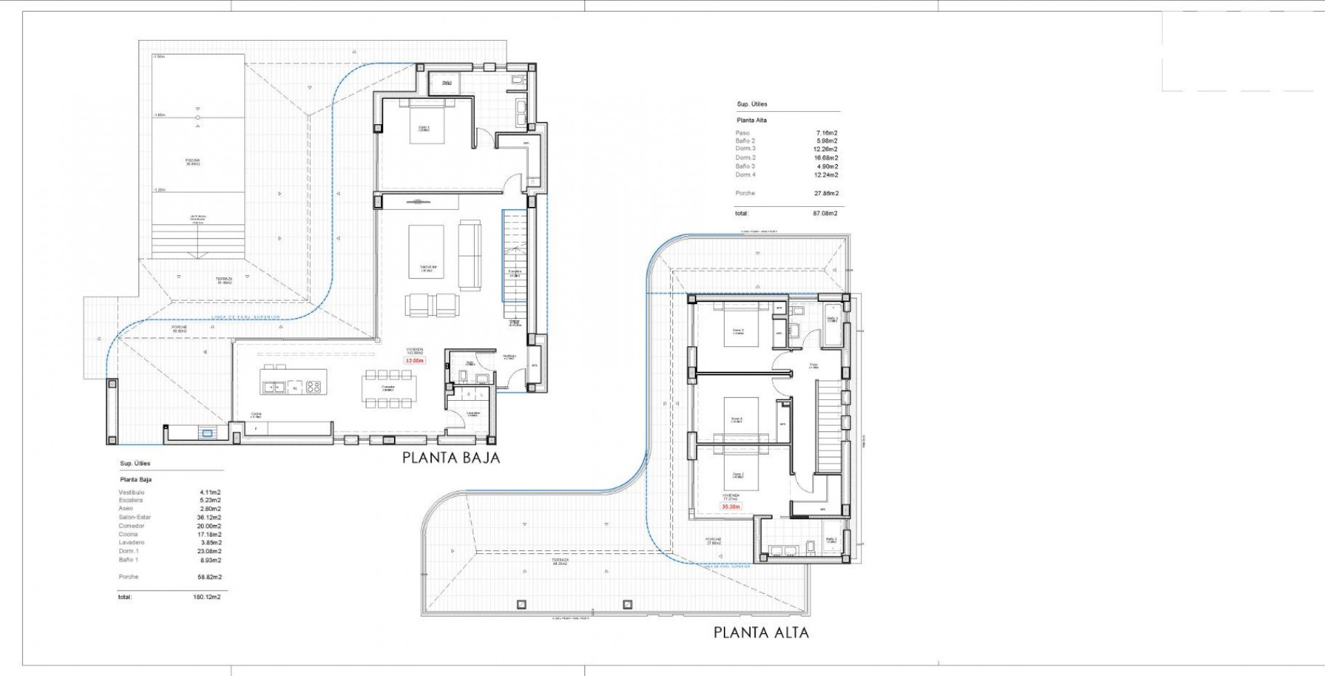 Luksusowy nowoczesny dom w sercu Moraira-Teulada: współczesny śródziemnomorski wypoczynek Odkryj wspaniały dom jednorodzinny położony w malowniczym miasteczku Moraira-Teulada na Costa Blanca. Ta nowoczesna nieruchomość oferuje wyjątkowe połączenie luksusu, komfortu i naturalnego piękna, położona na dużej działce, która zapewnia zarówno prywatność, jak i panoramiczne widoki na otaczający śródziemnomorski krajobraz. Moraira-Teulada słynie z uroczej nadmorskiej atmosfery, tętniącej życiem lokalnej kultury i łatwego dostępu do kluczowych udogodnień. Doskonałość architektoniczna z panoramicznym widokiem Ten architektonicznie zaprojektowany dom jest nowoczesnym arcydziełem, które harmonijnie łączy się z naturalnym otoczeniem. Zbudowany ze zbrojonego betonu i podkreślony drewnianymi detalami, projekt domu płynnie integruje duże szklane panele, aby zmaksymalizować naturalne światło i oprawić zapierające dech w piersiach widoki na morze i bujną zieleń. Dom jest zbudowany na różnych tarasach, uzupełniając naturalne nachylenie terenu i oferując niezakłócone widoki pod każdym kątem. Przestronny układ wnętrz dla eleganckiego życia Parter jest sercem tego domu, z przestronną częścią dzienną na otwartym planie o powierzchni 36 m², która łączy się z rozległym tarasem zewnętrznym o powierzchni 81 m². Wysokiej klasy kuchnia i jadalnia o powierzchni 20 m² są wyposażone w najnowocześniejsze urządzenia, dzięki czemu idealnie nadają się zarówno do codziennego życia, jak i rozrywki. Na piętrze znajduje się główna sypialnia z garderobą, łazienką i dostępem do prywatnego tarasu. Trzy dodatkowe sypialnie, każda z własną łazienką i tarasem, zapewniają luksusowy komfort członkom rodziny lub gościom. Wyjątkowe życie na świeżym powietrzu i basen bez krawędzi Przestrzenie zewnętrzne zostały zaprojektowane z myślą o relaksie i rozrywce, w tym rozległy taras o powierzchni 81 m², idealny do spożywania posiłków na świeżym powietrzu lub wylegiwania się w śródziemnomorskim słońcu. Taras prowadzi do oszałamiającego basenu bez krawędzi, który łączy się z horyzontem, tworząc spokojną oazę. Starannie zagospodarowany ogród, wypełniony rodzimymi roślinami i drzewami, podkreśla spokojną atmosferę domu i zapewnia dodatkową prywatność. Zrównoważone i energooszczędne funkcje Ta nieruchomość jest wyposażona w zrównoważone funkcje, w tym zaawansowaną pompę ciepła powietrze-woda, ogrzewanie podłogowe i klimatyzację kanałową. Wysokowydajne okna i izolacja zapewniają efektywność energetyczną i komfort przez cały rok. Doskonała lokalizacja w pobliżu kluczowych udogodnień Lotnisko Alicante: 90 km Pole golfowe La Sella: 15 km Port Moraira: 2 km Centra handlowe: 5 km Doświadcz nowoczesnego luksusu i spokoju w tym wyjątkowym domu, doskonale zlokalizowanym w poszukiwanym regionie Moraira-Teulada.