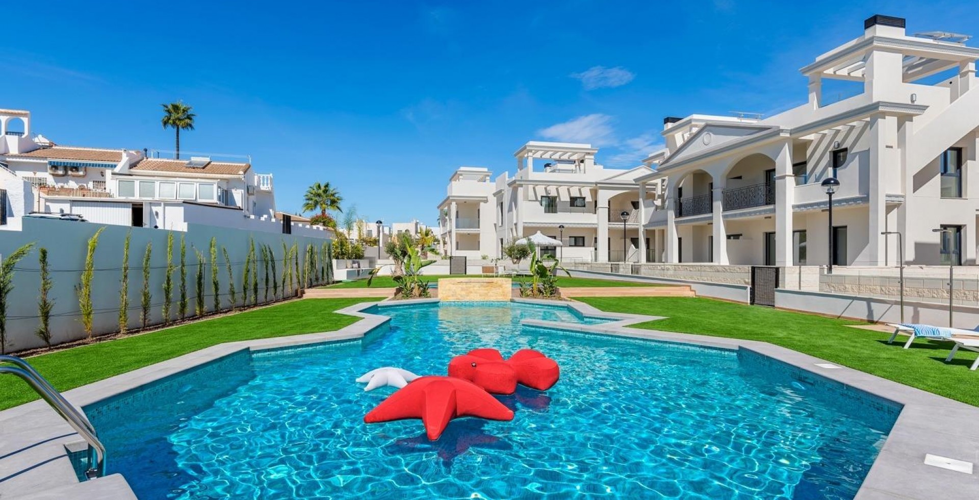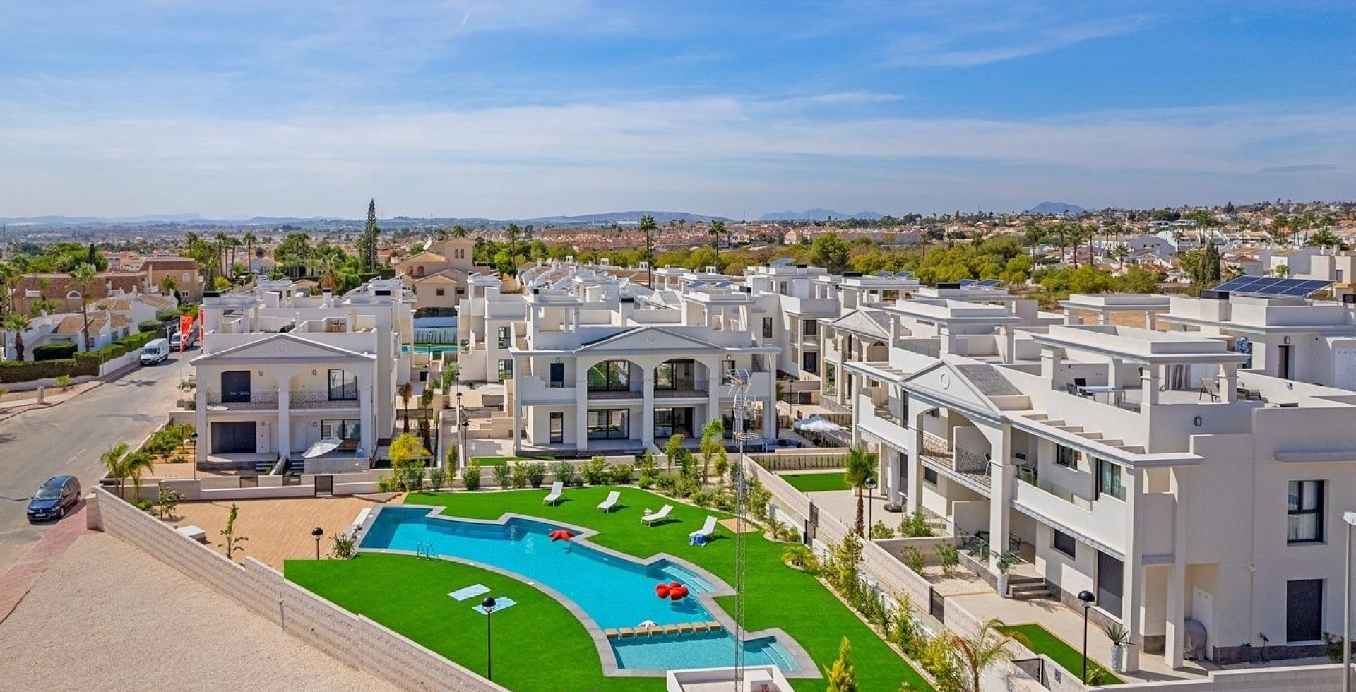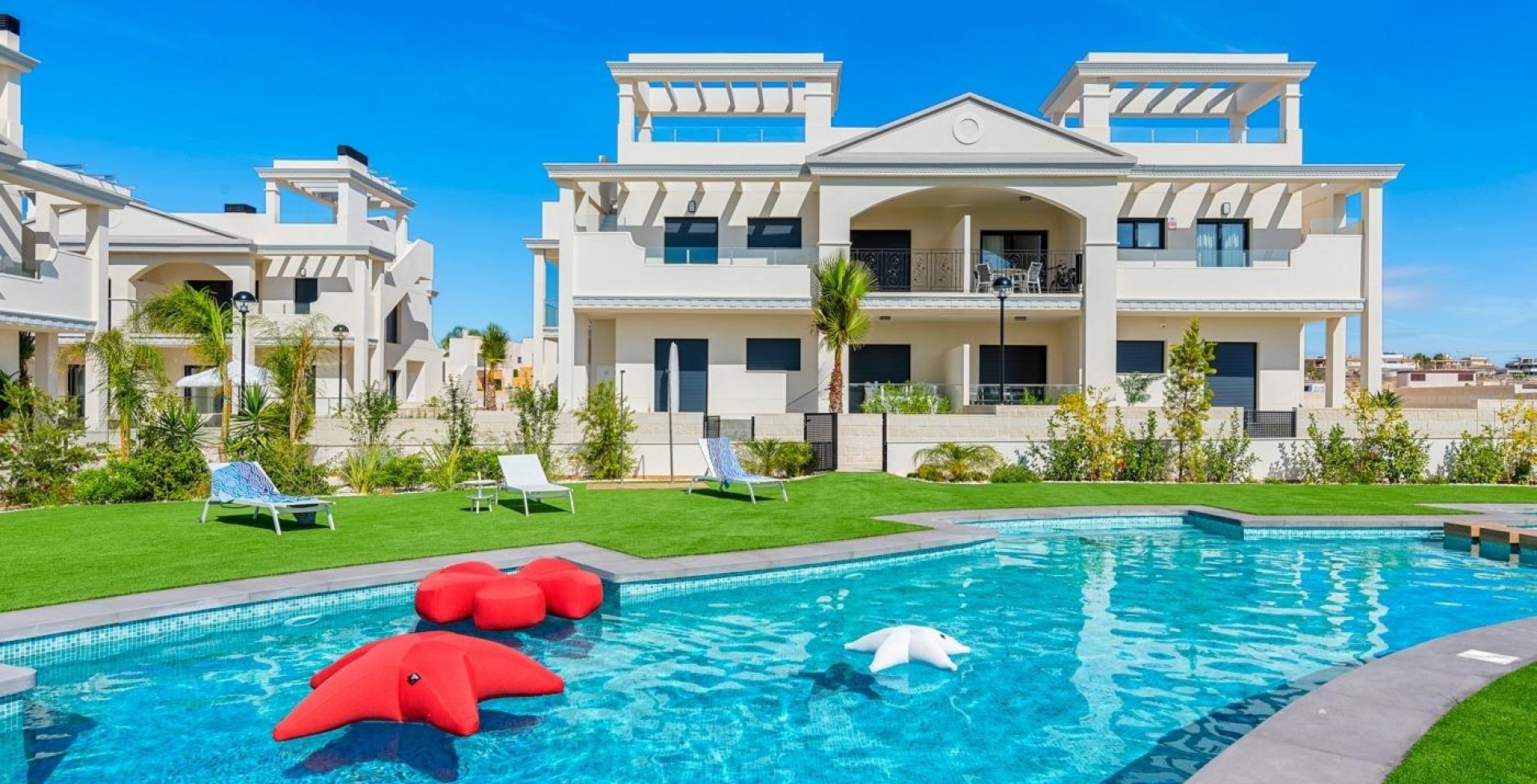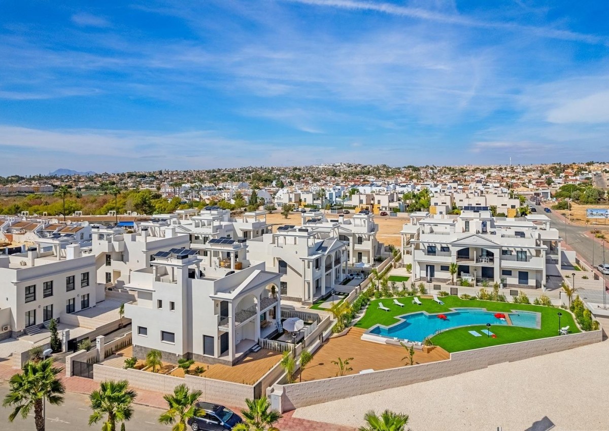 NOWE APARTAMENTY TYPU BUNGALOW W CIUDAD QUESADA New Build Residential complex of bungalow apartments on 2 floors: ground floor with private garden and first floor with private roof terrace. Prywatna rezydencja z terenami zielonymi, basenem i prywatnym parkingiem. Wszystkie niezbędne usługi w zasięgu ręki: supermarkety, pola golfowe, restauracje, ośrodki zdrowia. Ciudad Quesada rozwinęła się szybko w ciągu ostatnich dwóch dekad, z szerokim spektrum właściwości, aby zaspokoić wszystkie potrzeby i budżety, w tym wolnostojące wille, mniejsze społeczności zamknięte, bungalowy i apartamenty. Udogodnienia dostępne w Quesada również poprawiły się w czasie, więc jest teraz domem dla szerokiej gamy barów, restauracji, sklepów i supermarketów, wraz z kilkoma bankami, klinikami dentystycznymi, aptekami, salonami fryzjerskimi, kioskami, tytoniowymi i nowym Centrum Medycznym znajdującym się w urbanizacji Doña Pepa. Tylko 10 minut od najlepszych plaż Costa Blanca i 30 minut od Alicante International Airport.