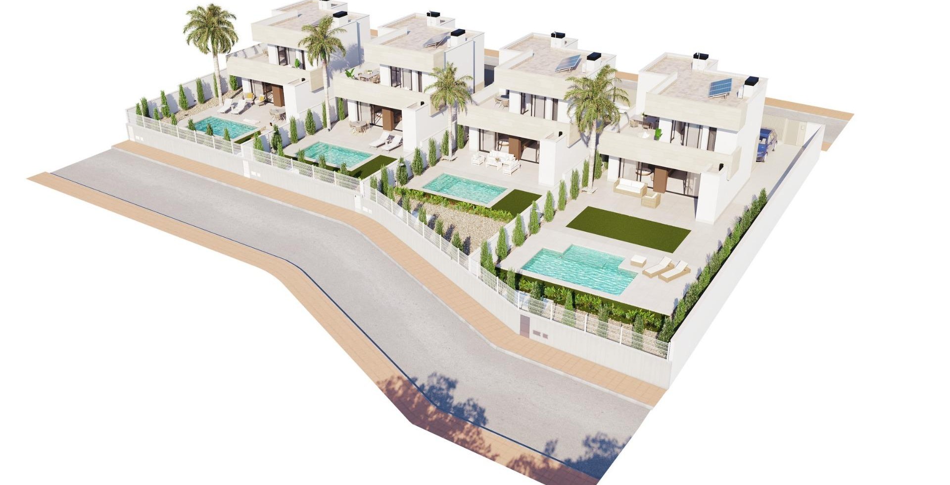 Nowoczesne, nowo wybudowane wille w pobliżu plaży w Santiago de la Ribera Współczesne życie nad morzem na wybrzeżu Costa Cálida Odkryj ekskluzywną inwestycję niezależnych willi w Santiago de la Ribera, położoną zaledwie 750 m od pięknych brzegów Mar Menor. To urocze nadmorskie miasteczko w regionie Murcji znane jest z relaksującego śródziemnomorskiego stylu życia, czystych piaszczystych plaż i słońca przez cały rok. Tutaj możesz cieszyć się idealnym połączeniem prywatności, komfortu i bliskości wszystkich niezbędnych udogodnień, możliwości spędzania wolnego czasu i aktywności na świeżym powietrzu. Niezależnie od tego, czy szukasz stałego miejsca zamieszkania, domu wakacyjnego, czy inwestycji o dużym potencjale wynajmu, te wille oferują doskonałą okazję do cieszenia się nadmorskim stylem życia w jednej z najbardziej pożądanych lokalizacji na wybrzeżu Costa Cálida. Elegancki design i funkcjonalny układ Zaprojektowane w nowoczesnym stylu architektonicznym i z myślą o wysokiej funkcjonalności, każda willa ma dwa piętra, co pozwala maksymalnie wykorzystać przestrzeń i naturalne światło. Domy obejmują 3 przestronne sypialnie, w tym jedną na parterze 3 w pełni wyposażone łazienki, wszystkie przy sypialniach Prywatny ogród i basen Taras na pierwszym piętrze idealny do opalania się i relaksu Prywatny parking z bramą automatyczną Ten przemyślany układ zapewnia komfort i prywatność, a jednocześnie oferuje przestronne przestrzenie zewnętrzne do rozrywki, spożywania posiłków lub po prostu cieszenia się śródziemnomorskim klimatem. Wysokiej jakości wykończenia i wyposażenie premium Nieruchomości te zostały zbudowane zgodnie z wysokimi standardami, z wykorzystaniem najwyższej jakości wykończeń i nowoczesnych instalacji, w tym Wzmocnione drzwi wejściowe Rolety automatyczne W pełni wyposażoną kuchnię wraz z urządzeniami Łazienki z meblami, lustrami i ogrzewaniem podłogowym Instalację przygotowującą do montażu klimatyzacji kanałowej Prywatny basen Dwa panele fotowoltaiczne z mikroinwerterem Zaprojektowane z myślą o całorocznym użytkowaniu, domy te zapewniają wydajność, komfort i styl w każdym zakątku. Doskonała lokalizacja blisko morza i usług Położona w spokojnej dzielnicy mieszkalnej, a jednocześnie otoczona usługami, inwestycja ta oferuje niezrównaną wygodę dzięki szybkiemu dostępowi do plaż, marin, sklepów i pól golfowych. Odległości obejmują Plaże Mar Menor 0,75 km Centrum handlowe La Ribera 2 km Roda Golf 5 km Marina Lo Pagán 4 km Centrum handlowe Dos Mares 3 km Lotnisko San Javier 6 km Murcja 40 km Kartagena 30 km Okolica jest idealna dla miłośników przyrody, sportów wodnych i wszystkich, którzy poszukują tętniącego życiem, a jednocześnie spokojnego stylu życia nad morzem. Spełnij swoje marzenie o życiu nad Morzem Śródziemnym Nie przegap okazji, aby stać się właścicielem stylowej, nowo wybudowanej willi w jednym z najbardziej poszukiwanych nadmorskich miast w Murcji. Skontaktuj się z nami już dziś, aby uzyskać więcej informacji lub umówić się na oglądanie nieruchomości.