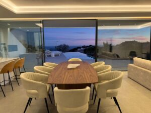 LUKSUSOWA NOWO WYBUDOWANA WILLA W ALTEA Nowo wybudowana luksusowa willa położona w Altea, najbardziej malowniczym miasteczku na Costa Blanca. Autentyczny skarb Morza Morskiego, który cieszy się bogatym krajobrazem oraz doskonałą komunikacją i usługami, z szerokim wyborem sklepów, restauracji, polem golfowym i mariną. W Altea znajdują się jedne z najpiękniejszych zatoczek i plaż w prowincji, wspaniała marina oraz szeroki wybór usług, sklepów i restauracji, które czynią ten region wyjątkowym miejscem do życia. Orientacja pomieszczeń oraz obecność dużych okien sprzyjają trwałemu współistnieniu wnętrza i zewnętrza domu, umożliwiając połączenie otoczeń i tworzenie jednej przestrzeni wizualnej. Światło przenika przez duże okna i przenika każdy zakątek domu, wyznaczone obecnością białych i przezroczystych materiałów. Ponad 800 m2 działki pozwala cieszyć się dużym ogrodem zewnętrznym z pełną prywatnością i bezpieczeństwem. To coraz ważniejszy przywilej, z którego możesz korzystać w tym domu przez cały rok. Rozmieszczenie przestrzeni jest zorganizowane wokół tarasu i basenu, które stanowią prawdziwe serce domu. Posiada bardzo funkcjonalny rozkład pokoi z dużą przestrzenią wspólną i trzema dużymi sypialniami z własnymi łazienkami, a także wyjątkową garderobą w głównym pomieszczeniu. Wszystkie pokoje mają prywatną łazienkę i dostęp do tarasów. W głównym pomieszczeniu znajduje się niezwykła, w pełni wyposażona garderoba o dużych rozmiarach oraz łazienka o funkcjonalnym stylu. Instalacja klimatyzacji przez kanały przez podwieszane sufity. Dwa urządzenia do ogrzewania i zimna, jedna na dzienny, druga na noc, według planów Daikin, Mitsubishi lub podobnej marki. W kuchni jest naturalne drewno, wysokiej jakości porcelana i perfekcyjnie wykończone powłoki pomagają stworzyć maksymalny komfort. Wyposażenie kuchni obejmuje wysokiej klasy sprzęt AGD, kamień naturalny oraz najwyższej jakości meble. Designerska kuchnia z wyspą Silestone, granitu lub podobną, z instalacją obejmującą zlew i kuchenkę indukcyjną. Maska płaska o długości 90 cm, wykonana ze stali nierdzewnej pierwszej marki. Elektryczny piekarnik BOSCH lub podobny. Altea to jedna z najbardziej urokliwych wiosek na Costa Blanca. Posiada również oficjalny tytuł Kulturalnej Stolicy Wspólnoty Walencji. Altea ma uprzywilejowane położenie zarówno z morzem, jak i plażą, a także górami i rzeką. Altea ma ponad 8 km linii brzegowej, z naprzemiennymi klifami i małymi zatoczkami oraz odcinkami plaży na płaskim terenie. Lotnisko w Alicante znajduje się 50 minut jazdy stąd, a lotnisko w Walencji 1,5 godziny jazdy.