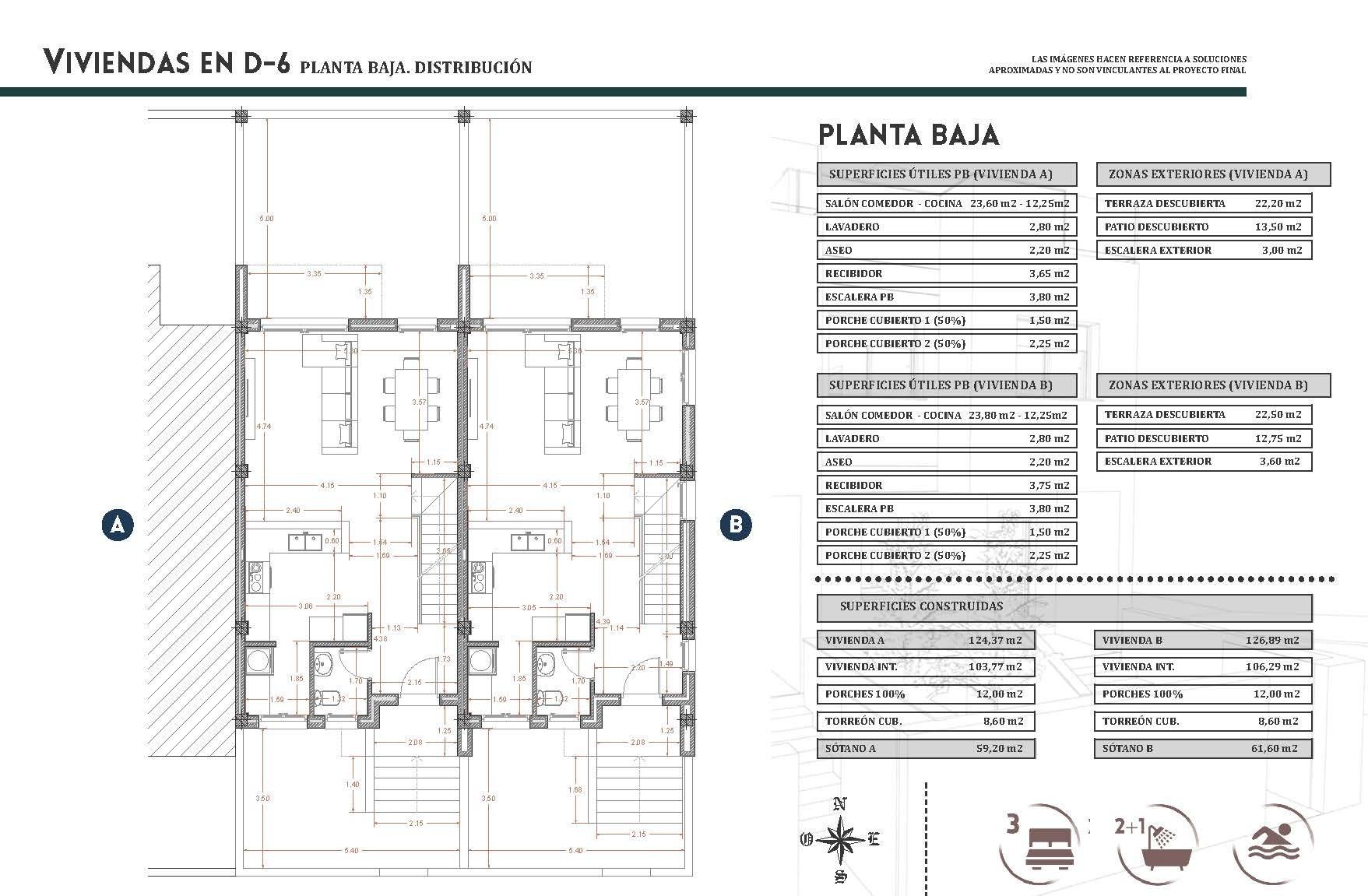 Nowe domy szeregowe z oranżerią i garażem w piwnicy w Bigastro Vega Baja Ekskluzywna inwestycja obejmująca tylko dwa nowoczesne domy Ten butikowy projekt nowo powstały to zaledwie dwa domy szeregowe w spokojnym miasteczku Bigastro, położonym w dzielnicy Vega Baja w południowej Costa Blanca. Zaprojektowane z praktycznym układem na kilku poziomach, te domy łączą przestrzeń, komfort i efektywność energetyczną w dobrze połączonym otoczeniu mieszkalnym. Bigastro słynie z cichej atmosfery, tradycyjnego hiszpańskiego charakteru oraz doskonałego dostępu do pobliskich miast, plaż i usług. Oferuje spokojny styl życia, jednocześnie będąc blisko wszystkiego, co jest potrzebne do codziennego życia, co czyni go idealnym zarówno do stałego pobytu, jak i wakacyjnego. Przestronny układ na czterech poziomach Każda nieruchomość rozłożona jest na piwnicę, parter, pierwsze piętro oraz dachowe solarium, oferując przestronne przestrzenie mieszkalne zarówno wewnątrz, jak i zewnętrzne. Piwnica o powierzchni 59 m2 zaprojektowana jest jako prywatny garaż z drzwiami z napędem elektrycznym, oferując bezpieczne miejsce parkingowe i dodatkową przestrzeń do przechowywania. Na parterze znajduje się jasny, otwarty salon z kuchnią, toaletą gościnną oraz dwoma tarasami – jednym z przodu, drugim z tyłu, co pozwala na naturalne światło i wentylację przez cały dzień. Na parterze znajdują się 3 sypialnie i 2 łazienki, z których jedna ma własną łazienkę, a dodatkowo jest dodatkowy taras. Na najwyższym poziomie prywatne dachowe solarium o powierzchni około 40 m2 zapewnia idealne miejsce do relaksu, opalania się lub stworzenia zewnętrznej strefy relaksu. Wysokiej jakości funkcje i energooszczędne systemy Domy te są zbudowane z nowoczesnych materiałów i z przemyślanymi detalami, aby zapewnić komfort i efektywność, w tym: wzmocnione drzwi wejściowe zabezpieczone System aerotermalny do ciepłej wody Fotowoltaiczne panele słoneczne Elektryczne żaluzje w salonie i sypialniach Wstępna instalacja klimatyzacji kanałowej Zmotoryzowane drzwi garażowe Mieszkańcy mają również dostęp do wspólnego basenu w ramach urbanizacji, dodając dodatkową wartość dla wypoczynku i relaksu. Dobrze skomunikowana lokalizacja Blisko plaż i usług Centrum Bigastro 0,5 km Orihuela City 5 km Plaże Guardamar del Segura 15 km Zenia Boulevard Shopping Center 20 km Vega Baja Hospital 10 km Międzynarodowe lotnisko Alicante 48 km Kilka pól golfowych w promieniu 15 km Pobliskia autostrada AP 7 zapewnia szybkie połączenia z Alicante, Murcią i okolicznymi nadmorskimi miastami. Doskonała okazja w rozwijającej się dzielnicy mieszkalnej Dzięki lokalnym sklepom, szkołom, obiektom sportowym, parkom i restauracjom, Bigastro zyskuje coraz większą popularność zarówno wśród krajowych, jak i międzynarodowych kupujących poszukujących jakości życia i dobrych kontaktów. Skontaktuj się z nami już dziś, aby uzyskać więcej informacji lub umówić się na wizytę w tych ekskluzywnych, nowo wybudowanych domach szeregowych w Bigastro.