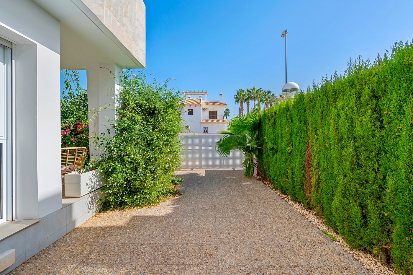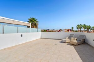 WILLA PROJEKTOWA ZE WSZYSTKIMI LUKSUSAMI Willa wolnostojąca z 3 sypialniami, 3 łazienkami, z orientacją POŁUDNIOWĄ. Na parterze znajduje się weranda / pergola o powierzchni 12 m2 oraz solarium o powierzchni 45 m2 na dachu. Posiada taras, prywatny ogród oraz drzwi wejściowe do samochodu. Został zaprojektowany z wysokiej jakości materiałów, wykorzystując najstaranniejszą technologię i zapewniając największy komfort – basen o wymiarach 6,5x3.3 z kolorowymi światłami, designerskimi płytkami, ceglanymi schodami, wodospadem 1.20 oraz ławką do siedzenia pod wodospadem. Ta rezydencja znajduje się w jednym z najpiękniejszych i najcichszych miejsc między Ciudad Quesada a Pueblo Bravo, w pobliżu Parku Przyrody Las Lagunas de La Mata i Torrevieja, bardzo blisko plaż Guardamar i pola golfowego La Marquesa.