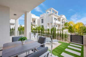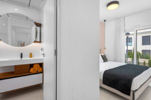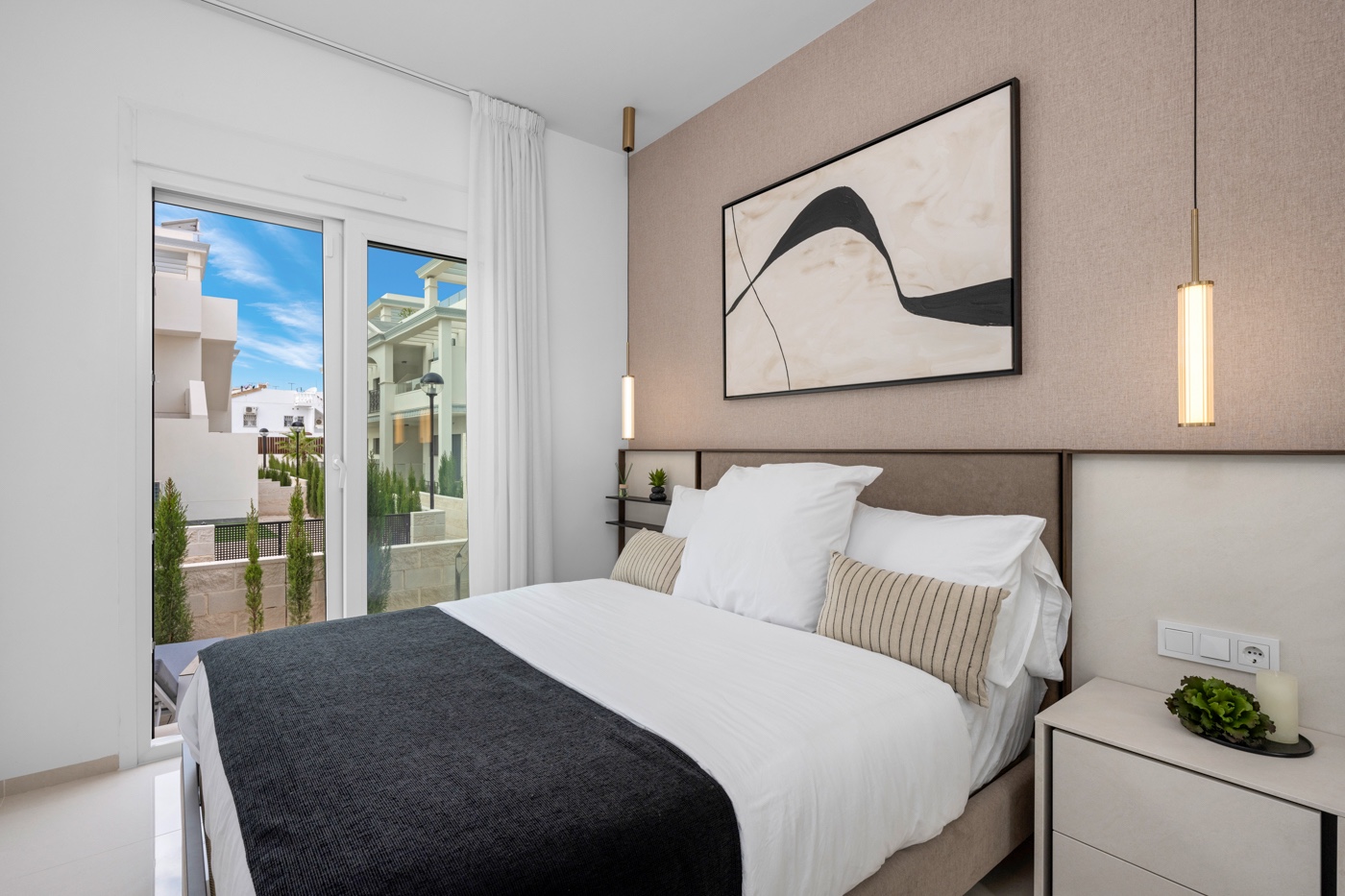 Ekskluzywne, nowo zabudowane mieszkanie (2024) zlokalizowane w prestiżowym kompleksie mieszkaniowym Adhara w Ciudad Quesada. Obiekt oferuje nowoczesny i funkcjonalny design, z dwoma przestronnymi sypialniami dwuosobowymi, z których jedna ma łazienkę z własną łazienką dla większej wygody. Salon wyróżnia się przyjazną i nowoczesną atmosferą, zintegrowaną z otwartą przestrzenią obok w pełni wyposażonej kuchni z wysokiej jakości sprzętem. Dzięki układowi salon i kuchnia łączą się bezpośrednio z głównym tarasem, zapewniając obfite naturalne światło i płynne przejście na zewnątrz. Dodatkowo z tyłu znajduje się drugi taras, tworzący różne przestrzenie do korzystania ze świeżego powietrza. Przylegające do tego tarasu, oddzielone drzewami owocowymi zapewniającymi prywatność, znajduje się prywatne miejsce parkingowe na terenie posesji. Wśród komfortowych cech mieszkanie posiada centralną klimatyzację ciepłą/zimną oraz ogrzewanie podłogowe w łazienkach. Jest dostarczana w pełni umeblowana i gotowa do wprowadzenia. Społeczność oferuje doskonałe przestrzenie wspólne, z dwoma basenami: jednym przed domem, drugim z tyłu, otoczonymi dużą przestrzenią do opalania się i relaksu. Lokalizacja jest idealna: zaledwie 5 minut jazdy od centrum Ciudad Quesada i mniej niż 10 minut od pięknych pobliskich plaż.