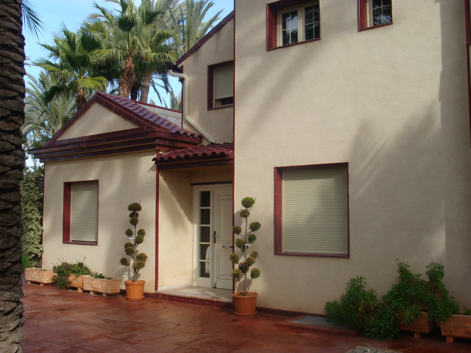 Piękna willa o powierzchni 824m2. powierzchni, 4765 m2 działki, 87 mieszkań i 4 łazienki. Klimatyzacja kanałowa, ogrzewanie przez grzejniki. Naturalna studnia z odwapniaczem. Parter: kuchnia, salon, 2 sypialnie, 1 łazienka, biuro Piętro Pierwsza: 4 sypialnie każda z własną łazienką, wyjście Piwnica: podgrzewany basen z dyszami terapeutycznymi, jacuzzi, fińska sauna, szatnia z łazienką Poddasze: jedna sypialnia, jedna łazienka Zewnętrzne ogrody, sztuczne jezioro z namiotami, terrarium, grill i duży basen Dom położony jest w sadzie palm. To ostatni sad palmowy, jaki można było zbudować.