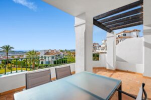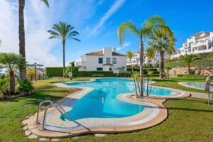 To atrakcyjne mieszkanie znajduje się w prestiżowym kompleksie mieszkaniowym Balcón de Sierra Cortina, dobrze ugruntowanym obszarze cenionym za spokój, zagospodarowane ogrody oraz bliskość Benidorm, plaż, pól golfowych i wszystkich udogodnień. Nieruchomość oferuje 87 m² zabudowanej i 76 m² powierzchni użytkowej, z wygodnym i funkcjonalnym układem. Oferuje jasną i przestronną przestrzeń z jadalnią z bezpośrednim dostępem na przyjemny otwarty taras, idealny do cieszenia się śródziemnomorskim klimatem oraz otwartymi widokami na morze, wspólne ogrody i tereny zielone. Kuchnia jest osobna, w pełni wyposażona i posiada przestrzeń użytkową. Główna sypialnia jest przestronna i oferuje garderobę z wejściem oraz łazienkę z własną łazienką. Jest też druga pełna łazienka, zapewniająca dodatkowy komfort zarówno dla codziennych mieszkańców, jak i gości. Mieszkanie jest sprzedawane umeblowane i wyposażone w klimatyzację, gotowe do przeprowadzki. Nieruchomość jest częścią prywatnego kompleksu mieszkaniowego wybudowanego w 2007 roku, oferującego wspólny basen, zadbane ogrody oraz spokojne, bezpieczne otoczenie. W zestawie znajduje się prywatne podziemne miejsce parkingowe oraz magazyn. Doskonała opcja na stałe zamieszkanie, dom wakacyjny lub inwestycję w jednym z najbardziej pożądanych obszarów Costa Blanca.